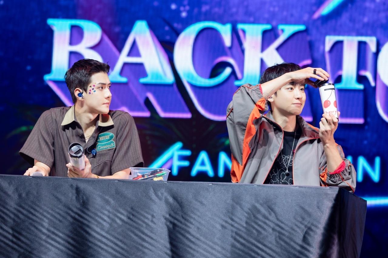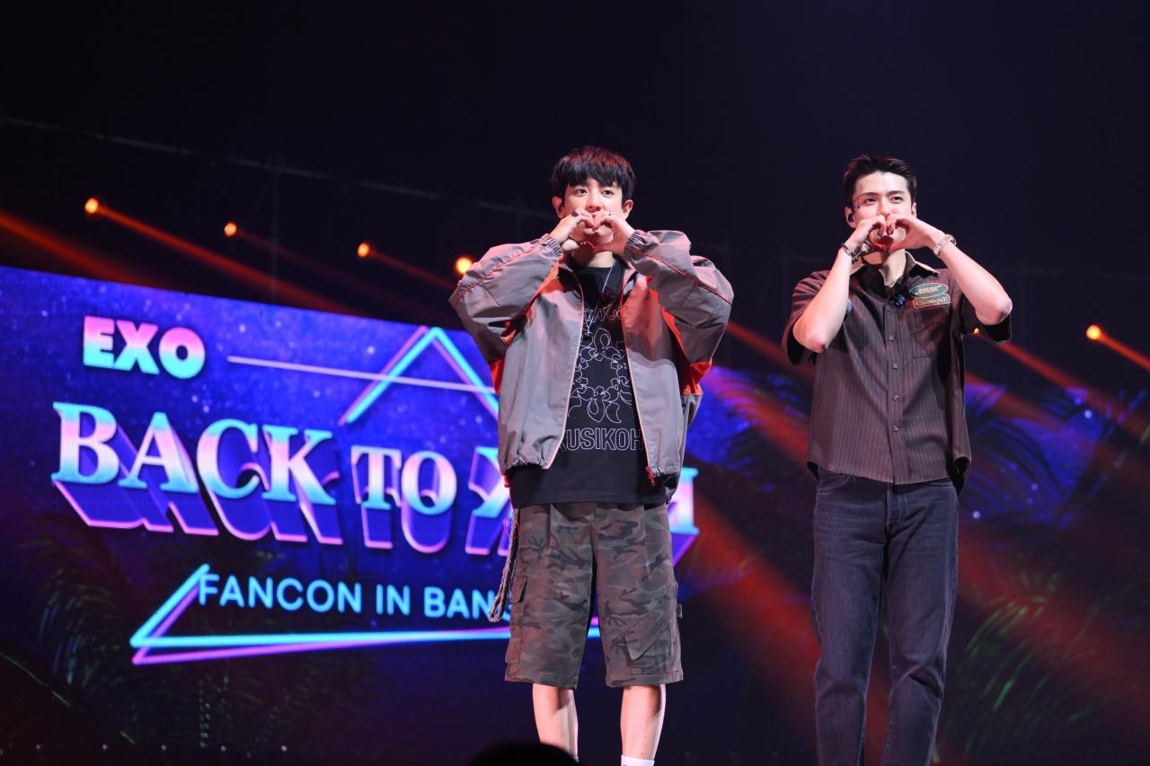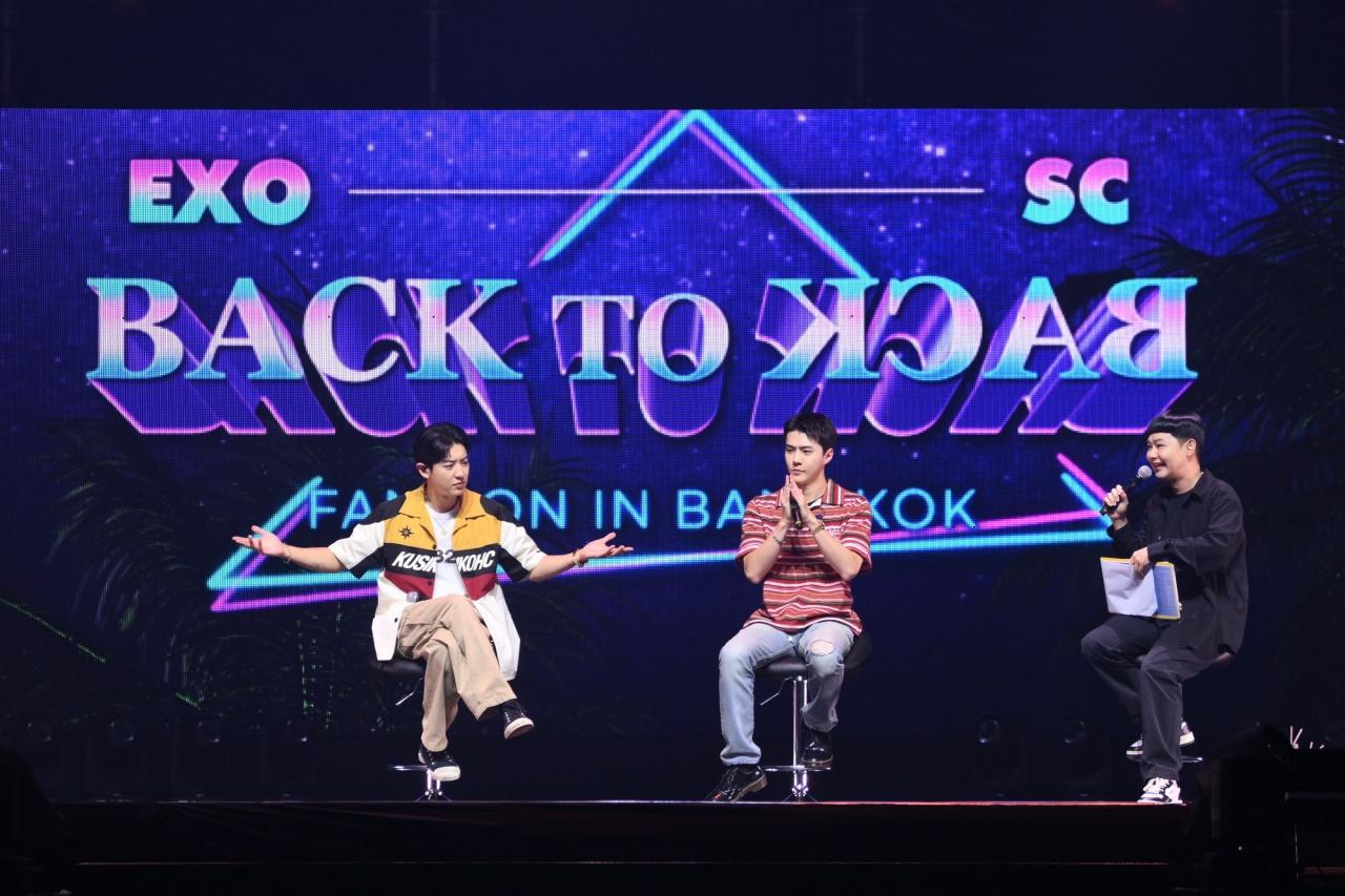 ‘EXO-SC BACK TO BACK FANCON IN BANGKOK’ เริ่มต้นท่ามกลางเสียงเชียร์ต้อนรับอย่างร้อนแรงของ EXO-L (เอ็กซ์โซ-แอล: ชื่อแฟนคลับอย่างเป็นทางการ) เมื่อ SEHUN (เซฮุน) และ CHANYEOL (ชานยอล) ปรากฏตัวขึ้นพร้อมกับเพลงจังหวะครื้นเครง ‘What a life’ ให้ทุกคนได้ปลดปล่อยความสนุกสนาน และพลังบวกไปพร้อมกับพวกเขา จากนั้นจึงทักทายผู้ชมอย่างเป็นทางการ ก่อนจะเข้าสู่ช่วงเกมต่างๆ ได้แก่ ‘เกมจับผิดภาพ’ จากภาพประกอบอัลบั้มที่ชื่นชอบ อีกทั้งยังโชว์มิตรภาพอันแน่นแฟ้นระหว่างกัน ในช่วงเกม ‘ได้ยินไหมเสียงหัวใจของฉัน (Can You Hear My Heart?)’ ที่ต้องทายใจคำตอบของอีกฝ่ายให้ตรงกันในบรรยากาศสุดอบอุ่น รวมถึง EXO-SC ได้เปิดประสบการณ์ใหม่ ด้วยการแข่งขันการเล่นคำภาษาไทย และลองลิ้มรสขนมไทย นอกจากนี้ ยังมีช่วง ‘บันไดแห่งความปรารถนา (Wishing Ladder Game)’ เอาใจแฟนๆ ตามคำขอ ซึ่ง CHANYEOL (ชานยอล) หยิบกีตาร์ขึ้นมาโชว์เพลงสดๆ กับเสียงร้องละลายใจ และ SEHUN (เซฮุน) โชว์เต้นหลากหลายเพลงเมดเลย์ ทั้งเพลงโซโล่ของตัวเองอย่าง ‘On Me’ และเพลงอันโด่งดังของ EXO (เอ็กซ์โซ) อย่าง ‘Love Shot’ และเพลงล่าสุด ‘Cream Soda’ เรียกเสียงกรี๊ดถล่มทลาย ความพิเศษยังไม่หมดเพียงเท่านี้ เพราะทั้งคู่ได้ประดิษฐ์ของขวัญที่มีชิ้นเดียวในโลกเพื่อมอบให้กับแฟนคลับผู้โชคดี