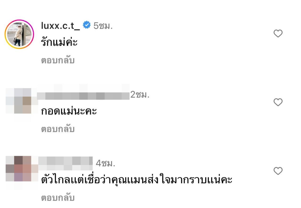 หลังจากที่แม่ป๋องโพสต์ข้อความถึงลูกชายสุดที่รัก งานนี้ ลุกซ์ น้องของ ใบเตย สุธีวัน กุญชร ก็ได้เข้ามาคอมเมนต์ด้วยข้อความสั้นๆ ในโพสต์ดังกล่าวว่า “รักแม่ค่ะ”