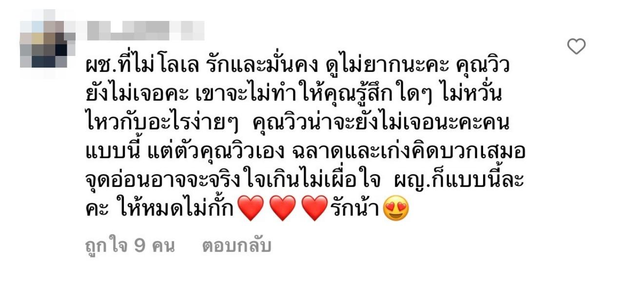 เรามองออกนะว่าเธอเศร้าเเละเราก็มองฝั่งนั้นออก ถอยออกมาขนาดนี้เเล้วเขายังเฉยช่างเค้าเถอะ, ผช.ที่ไม่โลเล รักและมั่นคง ดูไม่ยากนะคะ คุณวิวยังไม่เจอค่ะ เขาจะไม่ทำให้คุณรู้สึกใดๆ ไม่หวั่นไหวกับอะไรง่ายๆ คุณวิวน่าจะยังไม่เจอนะคะคนแบบนี้ แต่ตัวคุณวิวเอง ฉลาดและเก่งคิดบวกเสมอ จุดอ่อนอาจจะจริงใจเกินไม่เผื่อใจ ผญ.ก็แบบนี้ละค่ะ ให้หมดไม่กั๊ก รักน้า"