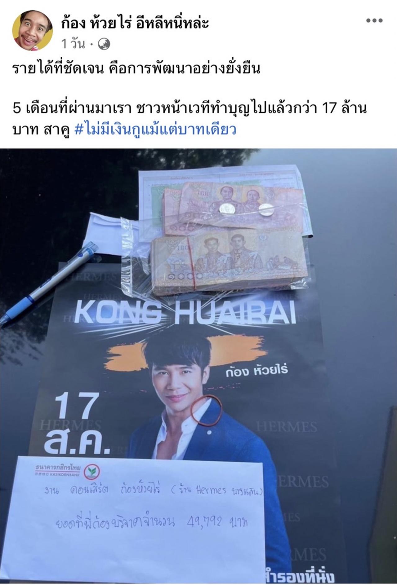 "รายได้ที่ชัดเจน คือการพัฒนาอย่างยั่งยืน 5 เดือนที่ผ่านมา เราชาวหน้าเวทีทำบุญไปแล้วกว่า 17 ล้านบาท สาคู #ไม่มีเงินกูแม้แต่บาทเดียว"