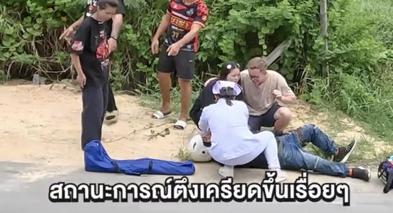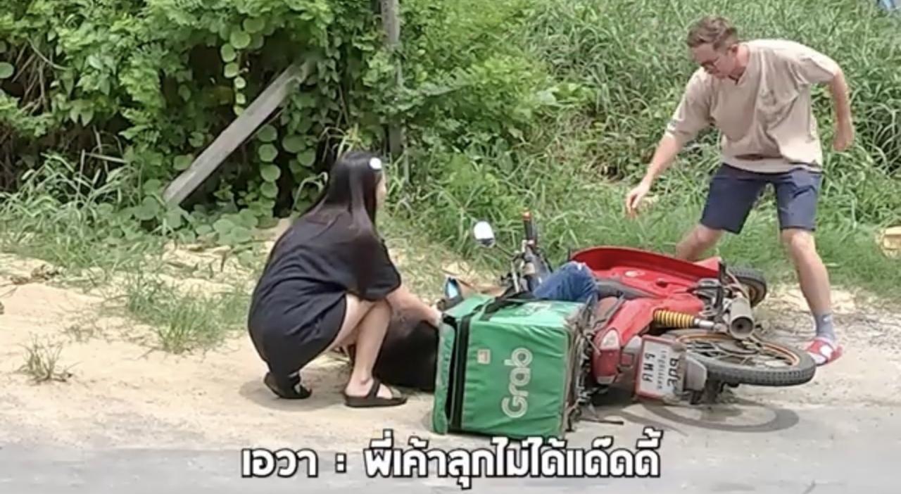 งานนี้ เอวา ถึงกับรีบพุ่งตัวลงจากรถเพื่อมาดูพี่มอเตอร์ไซค์ผู้ที่ได้รับบาดเจ็บทันที และถามว่า “พี่ขาโอเคไหมคะ เราชนเขาเหรอ พี่เขาลุกไม่ได้แด๊ดดี้” ก่อนจะช่วยเนทขยับรถออกอย่างสุดกำลัง ด้านเนทก็ถามว่า “พี่เจ็บตรงไหนครับ” ส่วนพี่คนขับมอเตอร์ไซค์บอกว่า “เจ็บตรงขาครับ” ทำเอา เอวา ตกใจกลัวจนตัวสั่นและวิ่งไปหาพี่ทีมงานอีกคนให้โทรศัพท์เรียกรถพยาบาล