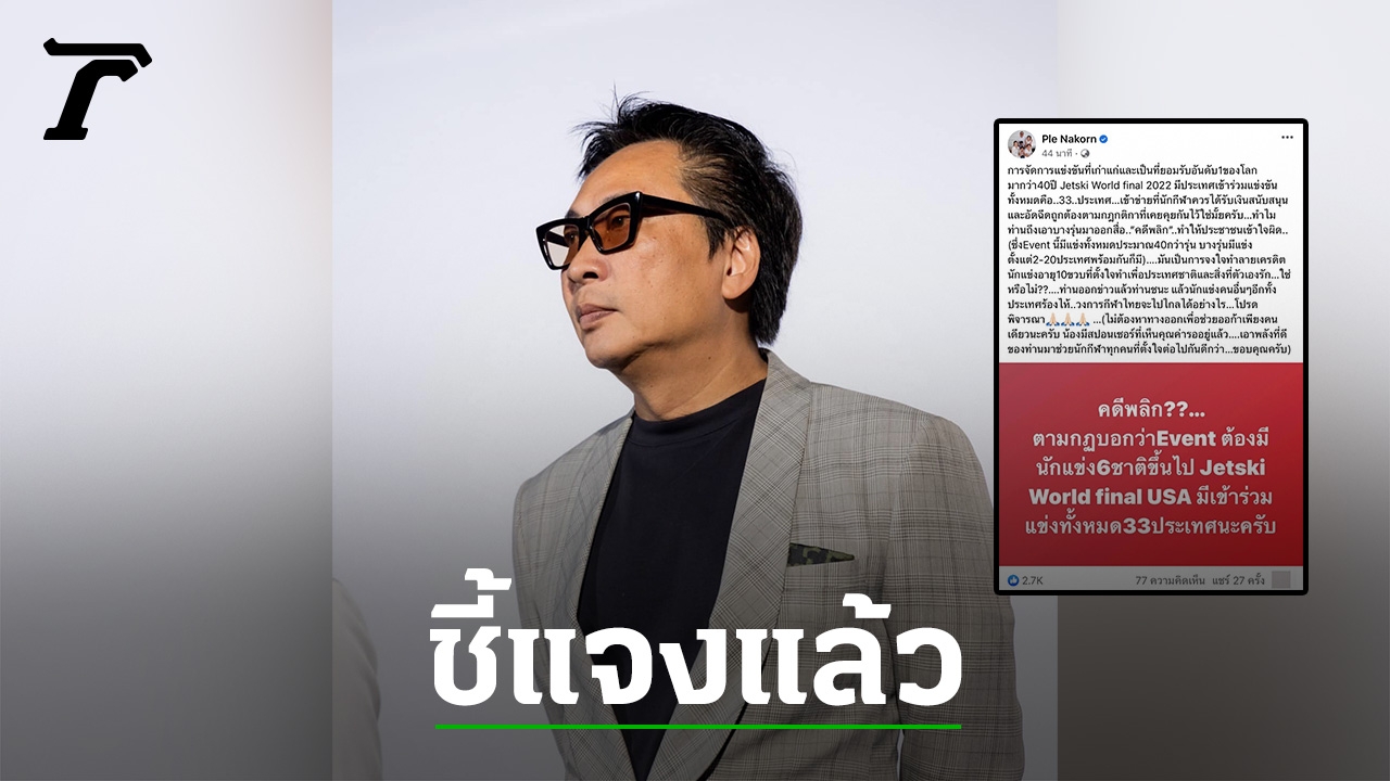 หลังจากที่ เปิ้ล นาคร ศิลาชัย ออกมาโพสต์ปมยกเลิกเงินสนับสนุนและเงินอัดฉีดปี 2022 ของนักกีฬาเจ็ตสกีไทย รวมไปถึงปีต่อๆ ไป จนกลายเป็นกระแสร้อนในโลกออนไลน์ ก่อนที่โลกออนไลน์จะแชร์ข่าวจากสื่อรายหนึ่งที่บอกว่าคดีพลิก ตามกฎบอกว่าการแข่งขันเจ็ตสกีต้องมีนักแข่ง 6 ชาติขึ้นไปถึงจะได้เงินอัดฉีด