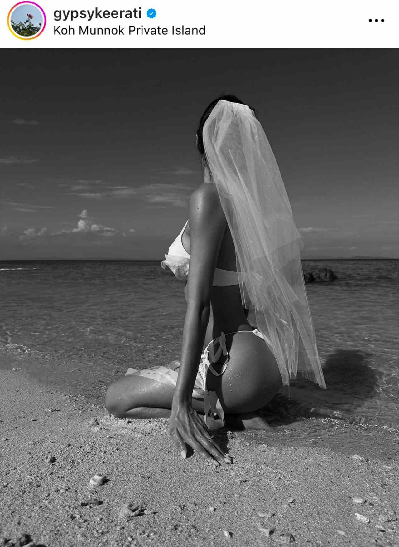 โดยภาพถ่ายเซตนี้ ยิปซี ว่าที่เจ้าสาวสุดแซ่บก็ไม่ทิ้งความเซ็กซี่ไป เพราะเจ้าตัวมาในชุดบิกินีตัวจิ๋ว พร้อมเวลเจ้าสาว อวดหุ่นสุดเฟิร์มให้แฟนๆ ได้ชม พร้อมใส่แคปชั่นง่ายๆ เป็นรูปอีโมจิหัวใจสีขาว พร้อมเฉลยว่า แฟนหนุ่มเป็นคนลั่นชัตเตอร์ถ่ายภาพเซ็กซี่เซตนี้ให้อีกด้วย งานนี้ทำเอาแฟนๆ อิจฉาในความสวยแซ่บและหุ่นสุดปังของยิปซีมากมาย