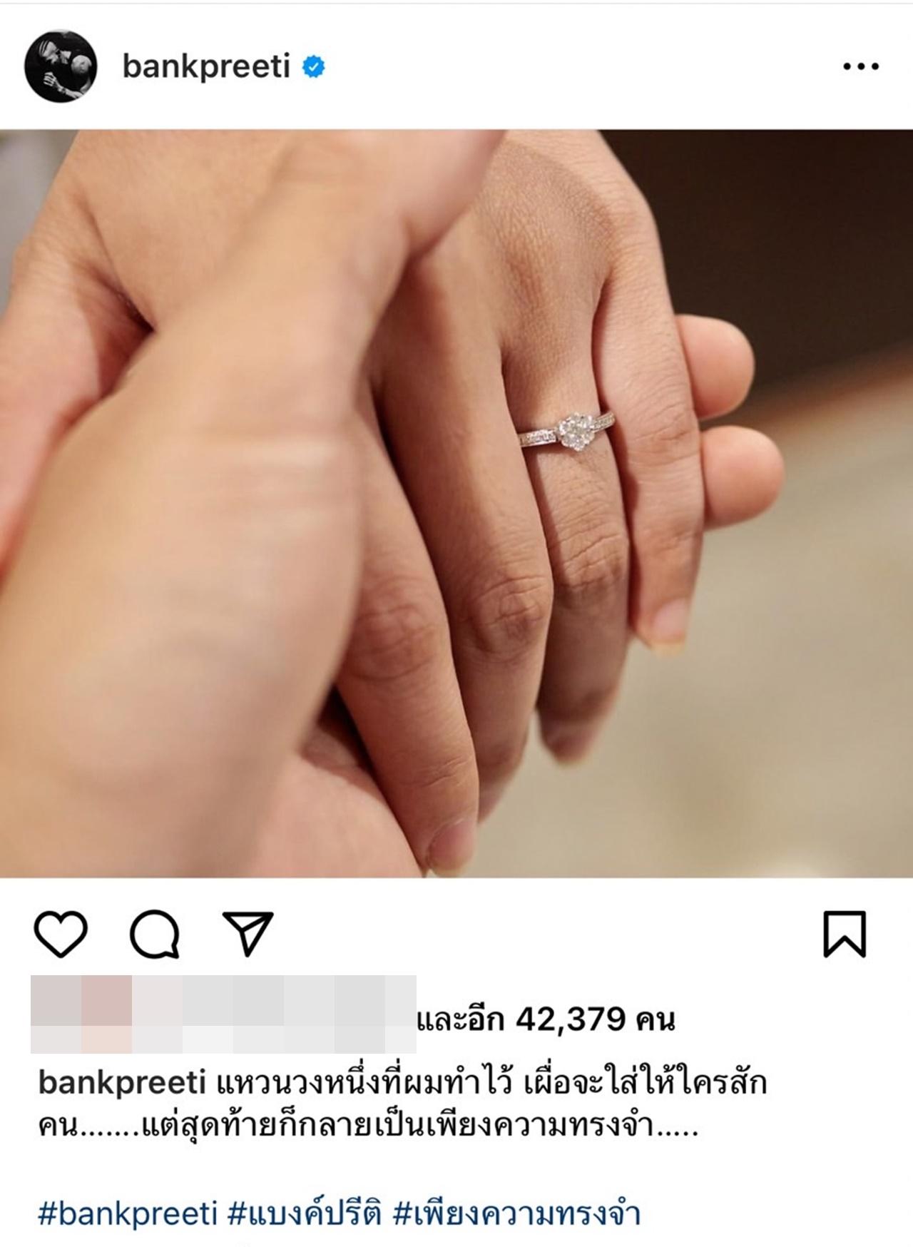 สำหรับประเด็นรูปสวมแหวนเพชรนั้น แบงค์ บอกว่า เรื่องรูปวันนั้นตนโพสต์เรื่องซิงเกิลใหม่ ที่กำลังจะมี 3 ซิงเกิล อยู่ในหนัง 1 เรื่อง คือเรื่อง เพียงความทรงจำ ได้ใส่แฮชแท็ก #เพียงความทรงจำ ไว้ด้วย