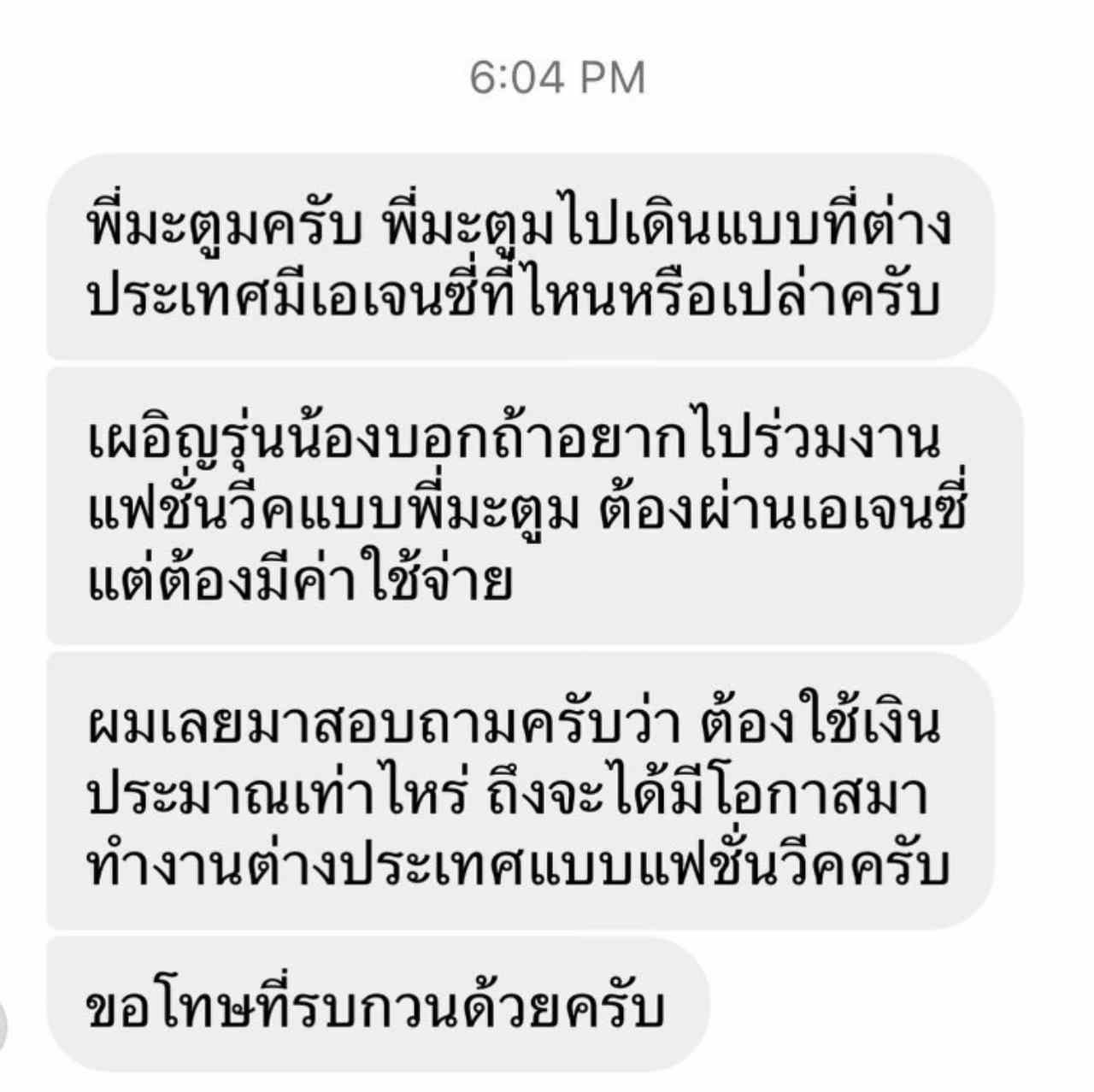 แต่วันนี้พอมีคนทักมาว่า มีบางคนอ้างว่าจ่ายตังแล้วได้มาเดินแบบมะตูม ทางตูมไม่สบายใจและไม่อยากปล่อยผ่านครับ เลยขอโพสชี้แจงให้ทราบทั่วกันดีกว่า และตูมรบกวนให้ทุกคนอย่าหลงเชื่อ "เด็ดขาด" และห้ามโอนเงินไปทุกกรณีนะครับ