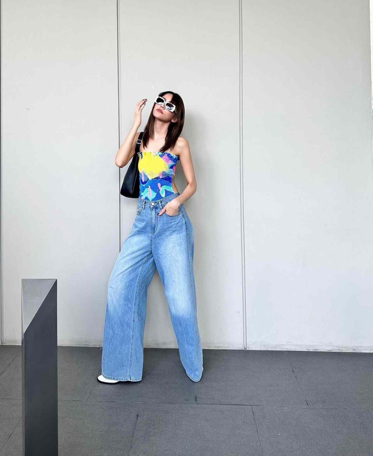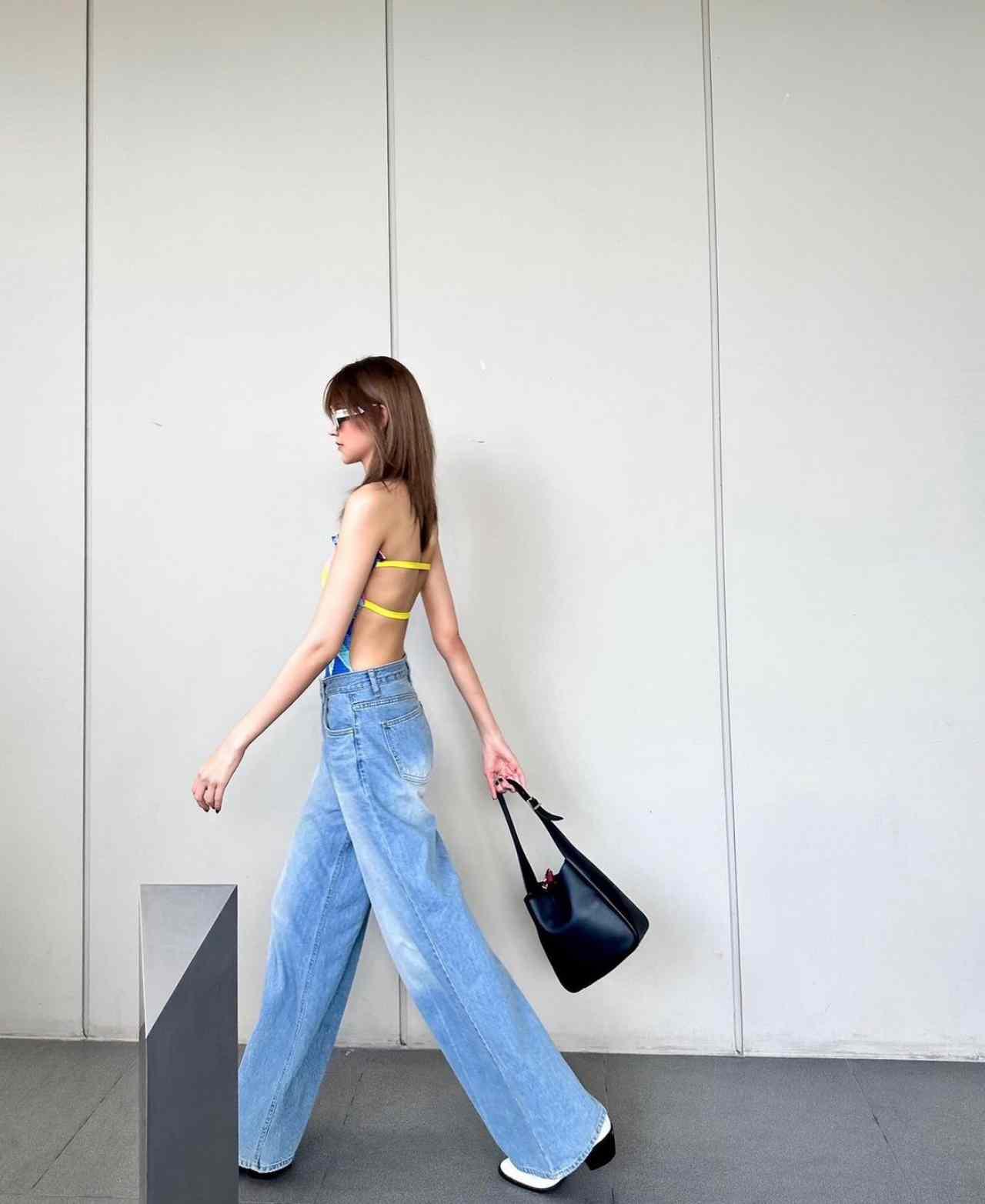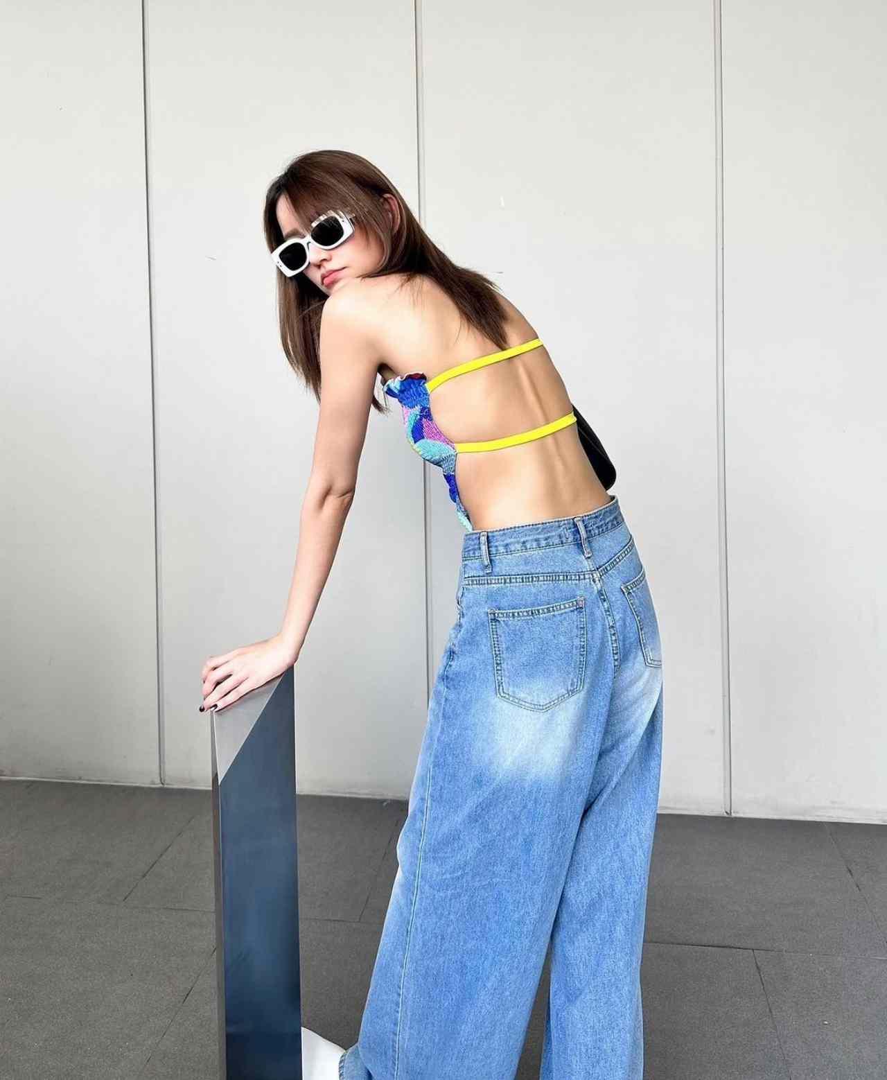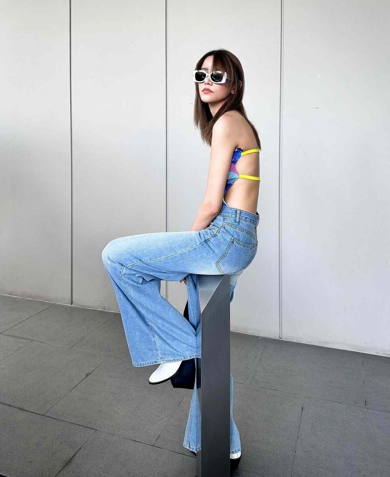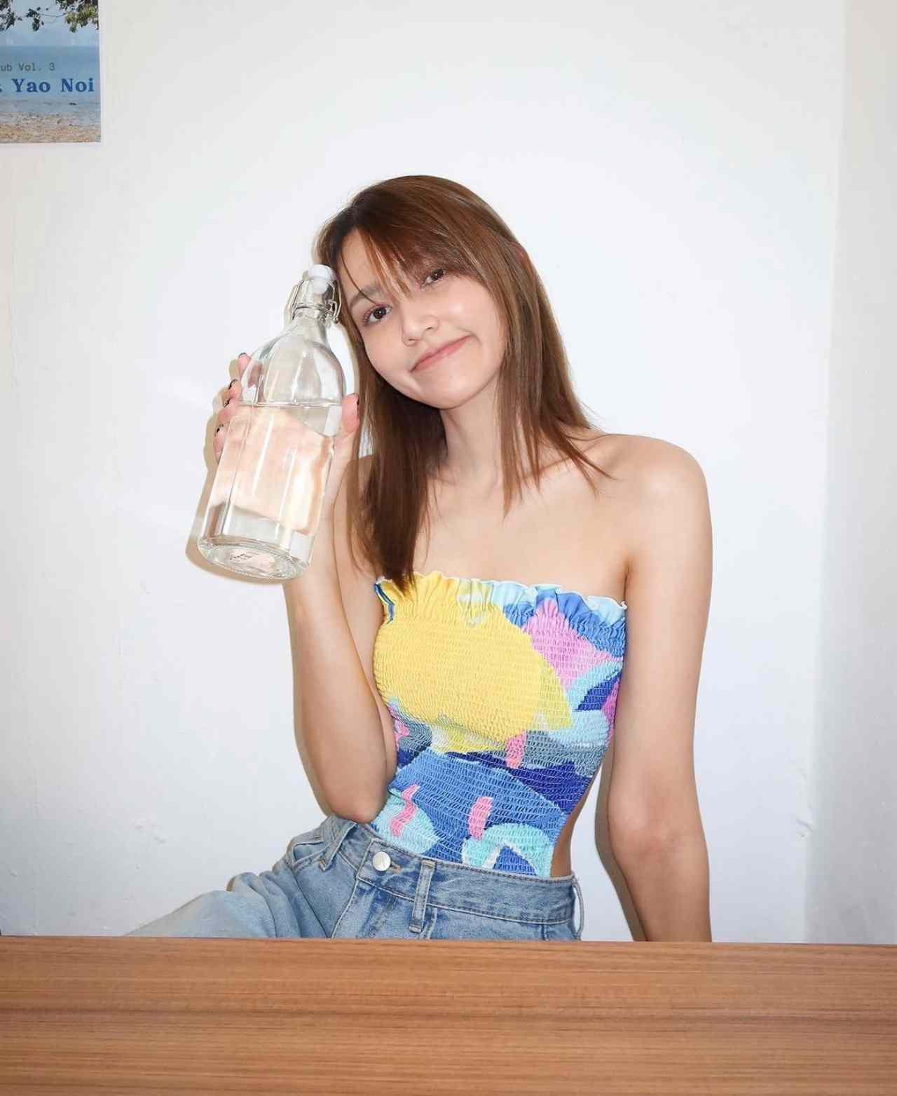 ล่าสุดขอโชว์ความเซ็กซี่น่ารักน่าหยิกน่าตี หยิบชุดว่ายน้ำเกาะอกแบบสวยสับ ซึ่งเป็นแบรนด์ชุดว่ายน้ำสัญชาติไทย แต่ดังไกลระดับโลกอย่าง AB. Angelys Balek ของดีไซเนอร์คนเก่งฝีมือปัง แองจี้ แอนเจลิส บาเลก ที่มีสีสันสดใสมามิกซ์แอนด์แมตช์คู่กับกางเกงยีนส์สีฟอก ออกมาดูเท่สุดๆ โดดเด่นด้วยการโชว์แผ่นหลังและสายชุดว่ายน้ำสีเหลืองสดใสเบอร์แรง พร้อมด้วยแว่นตากรอบสีขาวอมตะดูเข้ากันอย่างแรง