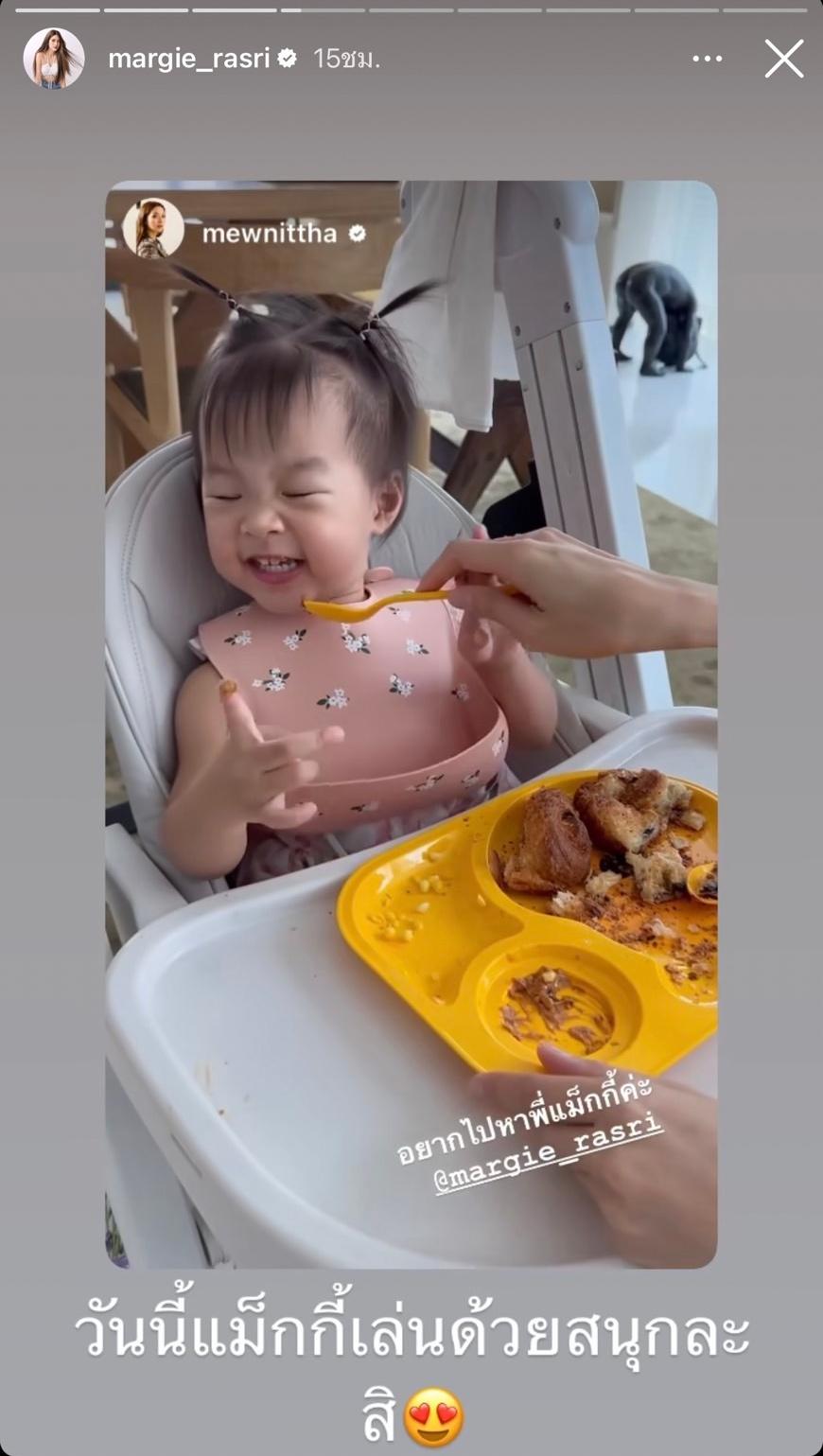 และล่าสุด น้องมาริน ก็มีโมเมนต์สุดน่ารักให้ได้ยิ้มอีกครั้ง โดย มิว นิษฐา ได้โพสต์คลิปตอนที่ลูกสาวกำลังทานข้าวลงในไอจีสตอรี่ @mewnittha และมีตอนหนึ่งที่ น้องมาริน พูดว่า “อยากไปเอ็มบาสซี” เมื่อ คุณแม่มิว ถามว่าไปทำอะไร ไปหาใคร น้องมาริน ก็ตอบว่า “ไปหาแม็กกี้” เรียกเสียงหัวเราะสนั่น