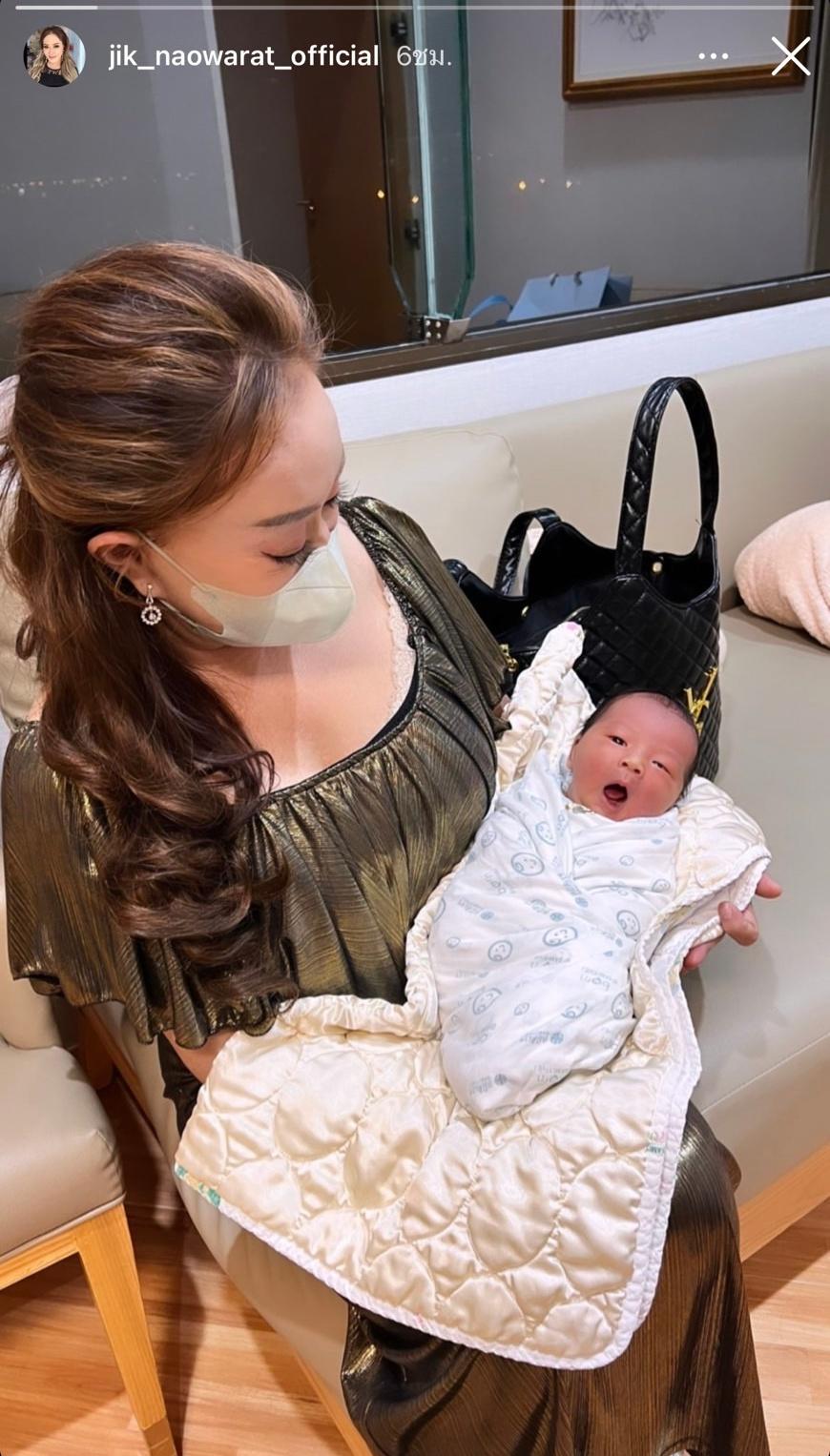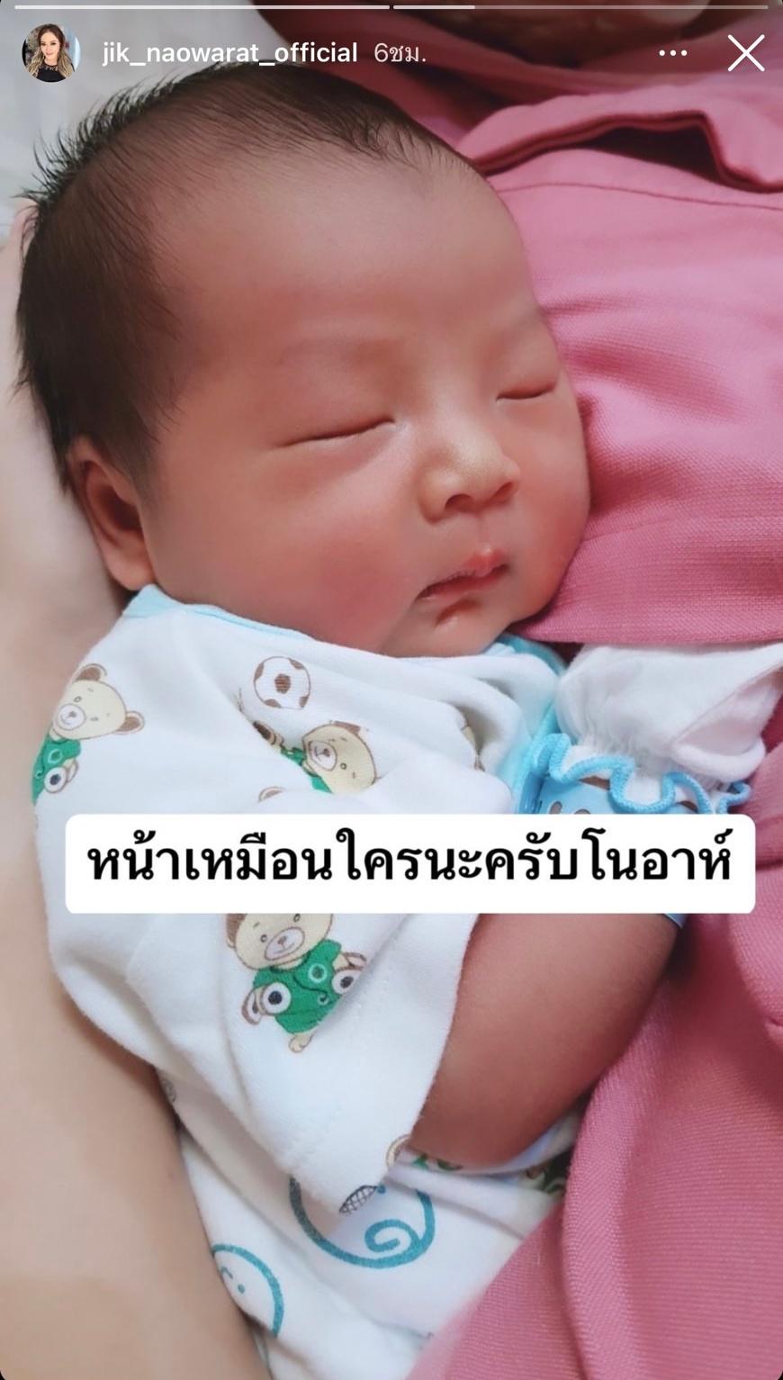 นอกจากนี้ จิ๊ก เนาวรัตน์ ยังโพสต์ภาพหลานชายตัวน้อยให้เห็นแบบชัดๆ ในไอจีสตอรี่ พร้อมทั้งเขียนแคปชั่น “หน้าเหมือนใครนะครับโนอาห์”