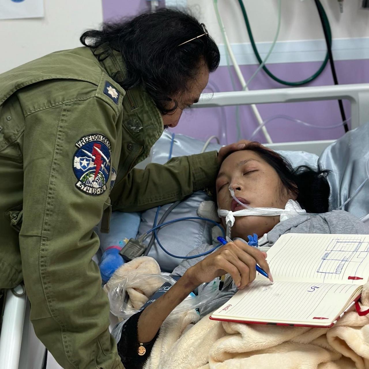 ถึงแม้แมงมุมจะมองไม่เห็นและตอนนี้พูดไม่ได้เนื่องจากใส่ท่อหายใจ แต่เราก็ยังสามารถสื่อสารกันได้ด้วยวิธีอ่านปากบ้าง เขียนโน้ตบ้าง เห็นเขาเจ็บ เขาทรมานแล้วใจจะขาด โดยเฉพาะเมื่อเขายังมีใจห่วงเราว่ากินข้าวหรือยัง นอนบ้างหรือไม่ ทั้งๆ ที่ตัวเองมีแต่ความเจ็บปวดในทุกห้วงลมหายใจ...