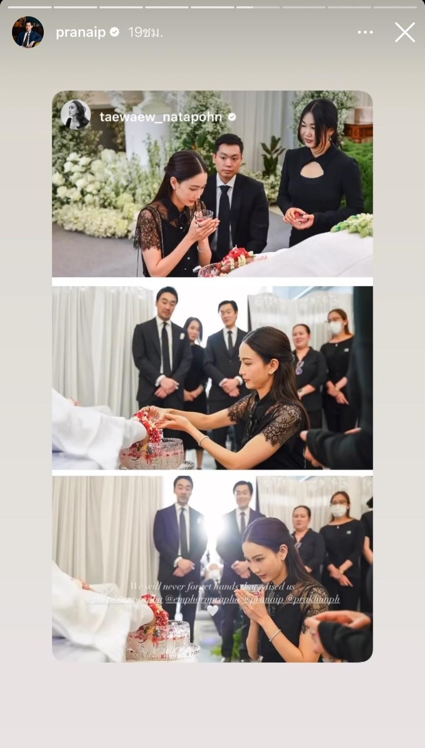 ด้านนางเอกสาว แต้ว ณฐพร เตมีรักษ์ หวานใจของ ณัย ประณัย ก็ได้โพสต์ภาพตอนไปร่วมงานศพ คุณพ่อพรพินิจ โดยเจ้าตัวยืนอยู่ข้างๆ ไฮโซณัย พร้อมทั้งเขียนข้อความว่า ““Someone special can never be forgotten.”-Our deepest condolences @phornpinit” อีกทั้งโพสต์ภาพลงในไอจีสตอรี่ด้วย ซึ่งมีคนในวงการบันเทิงรวมถึงแฟนๆ ร่วมแสดงความเสียใจกับครอบครัวพรประภาหลายข้อความ.
