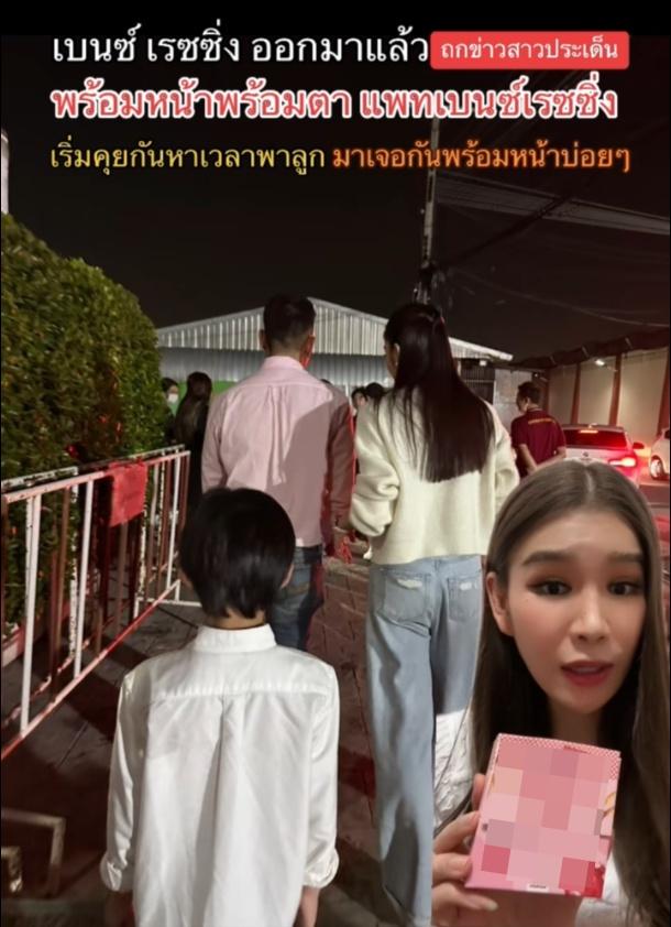 ในขณะที่ เจน จินดา เพื่อนสนิทของแพท ได้โพสต์คลิปเล่าข่าว เบนซ์ เรซซิ่ง ได้เจอ แพท-น้องเรซซิ่ง ก่อนที่จะเผยภาพที่ไม่ได้ออกสื่อ คือภาพ แพท-น้องเรซซิ่ง ไปรับ เบนซ์ ก่อนกลับบ้านพร้อมกัน
