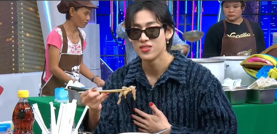 ด้าน แบมแบม สั่งก๋วยเตี๋ยวเรือเส้นเล็กน้ำตกเนื้อของโปรด ใส่ผ้าขี้ริ้วเยอะๆ บอกไม่เคยกินผ้าขี้ริ้ววัวมาก่อน อีกทั้งยังบอกว่าชอบกินกากหมูมากๆ มันๆ ต้องแซ่บหน่อย พร้อมทั้งพูดถึง มาวิน ทวีผล ที่ชอบกินผ้าขี้ริ้ววัว บอกอยากลองมากๆ จากนั้น แบมแบม ลองกินแคบหมูและบอกว่าอร่อยมาก พร้อมทั้งพูดว่า ขอบคุณพี่สรยุทธมากๆ ผมอยากกินแบบข้างทางมากๆ สรยุทธ ลงไปนั่งกับพื้นแล้วแซวว่า ได้อารมณ์ข้างทางพอไหม เรียกเสียงหัวเราะสนั่น