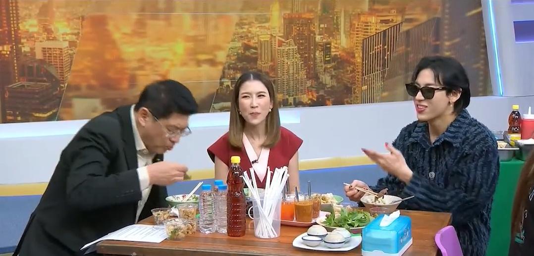และเมื่อทานก๋วยเตี๋ยวแล้ว แบมแบม บอกว่าอร่อยมาก กินไปก็พูดว่าอร่อยตลอดเวลา ชอบกินแบบนี้เข้มข้นดี กินแล้วกรุบๆ ดี เพิ่งกินผ้าขี้ริ้ววัวครั้งแรก เข้าใจพี่มาวินเลยว่าทำไมชอบ ไบร์ท ถามว่า คราวหน้าอยากกินอะไรดี แบมแบม ถามว่า ผมตำส้มตำกินได้ไหม สรยุทธ บอกว่า ต้องเอาครก มะละกอ มาใช่ไหม แบมแบม บอกว่า เดี๋ยวผมตำให้ สรยุทธ แซวอีก ตำได้แต่กินได้ไหม แบมแบม ยิ้มและรีบตอบว่า “กินได้สิครับ (หัวเราะ)” สรยุทธ บอกว่าได้ เดี๋ยวจะเตรียมลาบกับน้ำตกมาเสริม ก่อนจะจับมือและบอกว่าดีล.