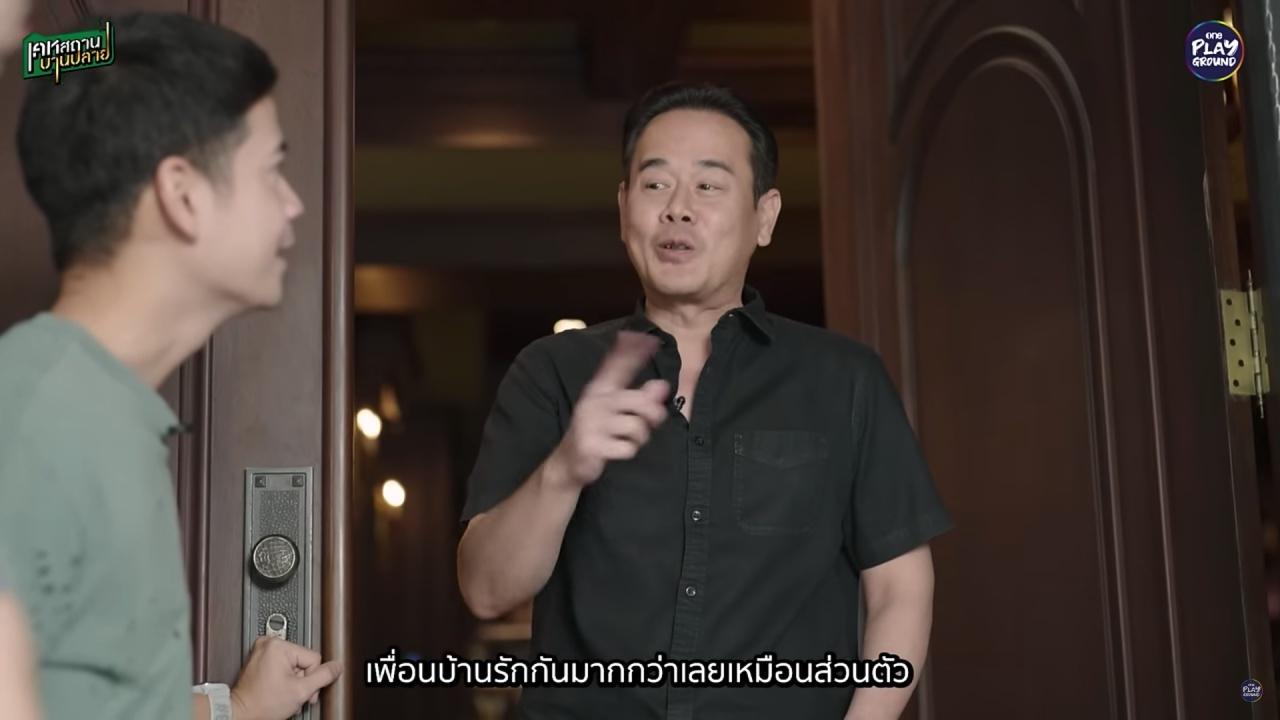 นอกจากนี้ยังได้พาไปดูพื้นที่ที่มีประวัติในบ้าน ที่เชิญ กบ ทรงสิทธิ์ ย้ายไปอยู่อีกฝั่ง เป๊กพูดขำๆ ว่า ไม่ได้เชิญ แต่ไล่ออกไป ซึ่งพื้นที่ตรงนี้เป็นเนื้อที่บ้านเก่าของเขา แล้วไปขอซื้อ ตอนที่รถเจาะมาเจาะตรงห้องพระ กบ ทรงสิทธิ์ ก็มายืนน้ำตาร่วง ถามว่าทำไม กบ ทรงสิทธิ์ ถึงยอมขายบ้านหลังเดิม เป๊ก บอกว่า บ้านหลังใหม่ที่เขาซื้อ หลังใหญ่กว่าหลังเดิมเยอะเลย และบ้านที่เป๊กซื้อต่อจาก กบ ทรงสิทธิ์ ก็ราคาประมาณ 30 ล้านบาท
