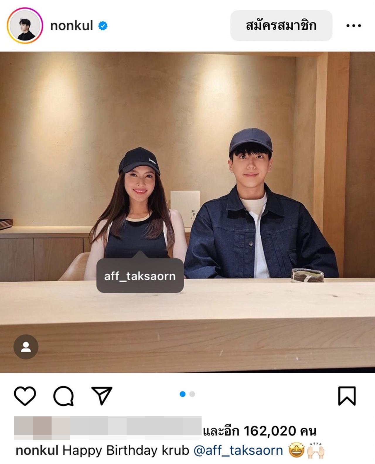 และล่าสุดในวันคล้ายวันเกิดของ แอฟ ทักษอร ด้าน นนกุล ก็ได้โพสต์ภาพคู่ครั้งแรก เป็นนั่งข้างกันในร้านอาหาร ใส่หมวกเหมือนกัน เสื้อสีโทนเดียวกันอย่างกับชุดคู่ พร้อมเขียนแคปชั่นว่า "Happy Birthday krub @aff_taksaorn" ด้าน แอฟ เองก็ได้เข้ามาคอมเมนต์ตอบกลับว่า "Thank you krub"