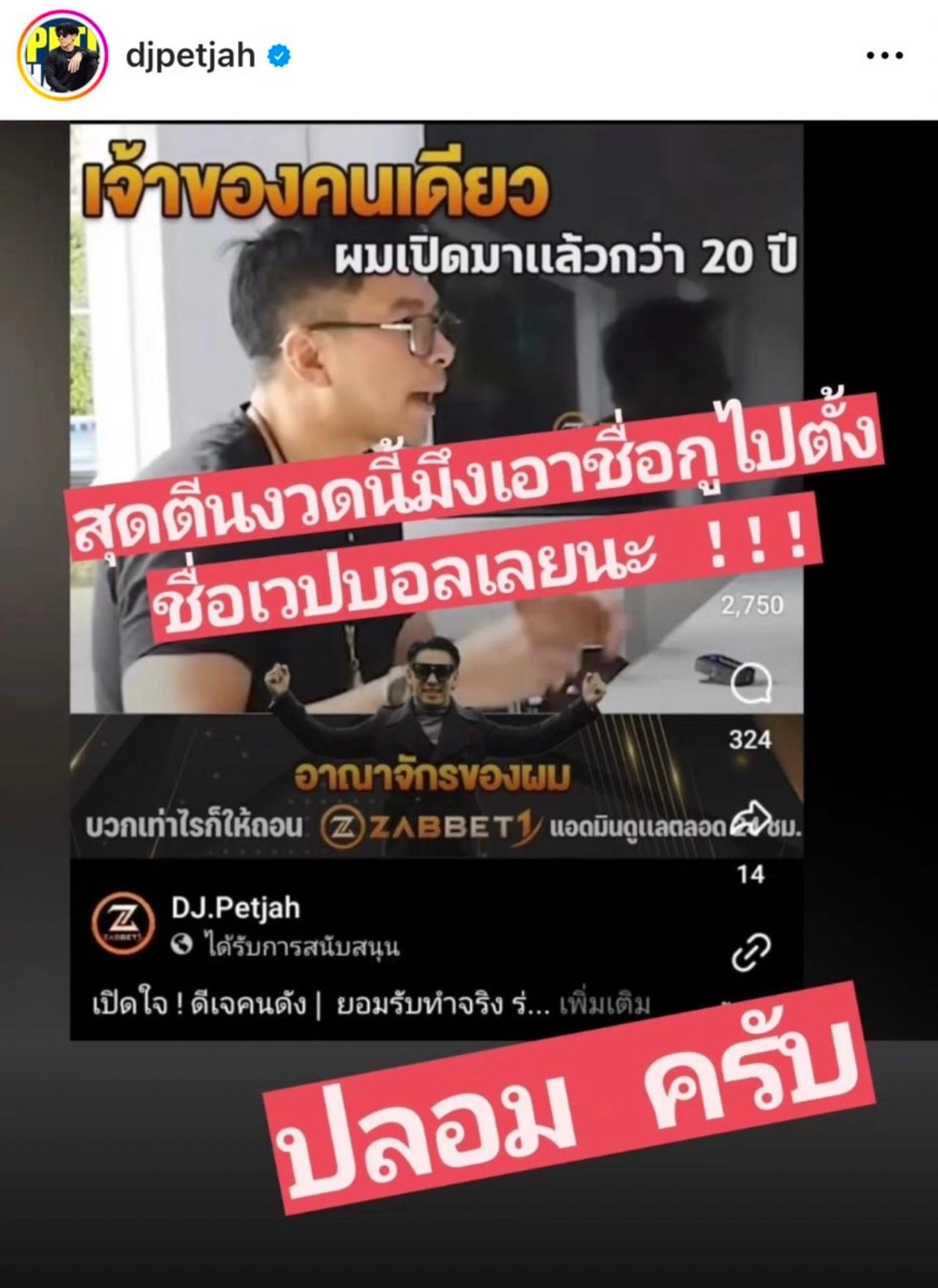 จากนั้นก็ได้เขียนแคปชั่นเพิ่มว่า "งวดนี้ คุณก็เอาชื่อผมมาเป็นเจ้าของเว็บซะแล้ว เอาทั้งชื่อผมมาตั้งเว็บ เอาทั้งรูปผมมาลง ว่าผมเป็นเจ้าของ ใครมันจะบ้า เอารูปตัวเองมาใช้เปิดเว็บบอลวะเนี่ย เอาคลิปมาตัดมาต่อเป็นตุเป็นตะ ผมแจ้งความเรียบร้อยละนะ เห็นหลายเว็บละนะ"