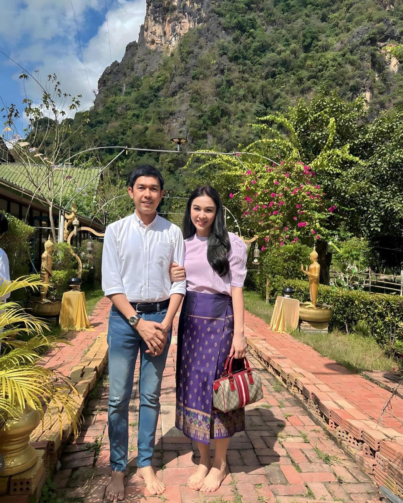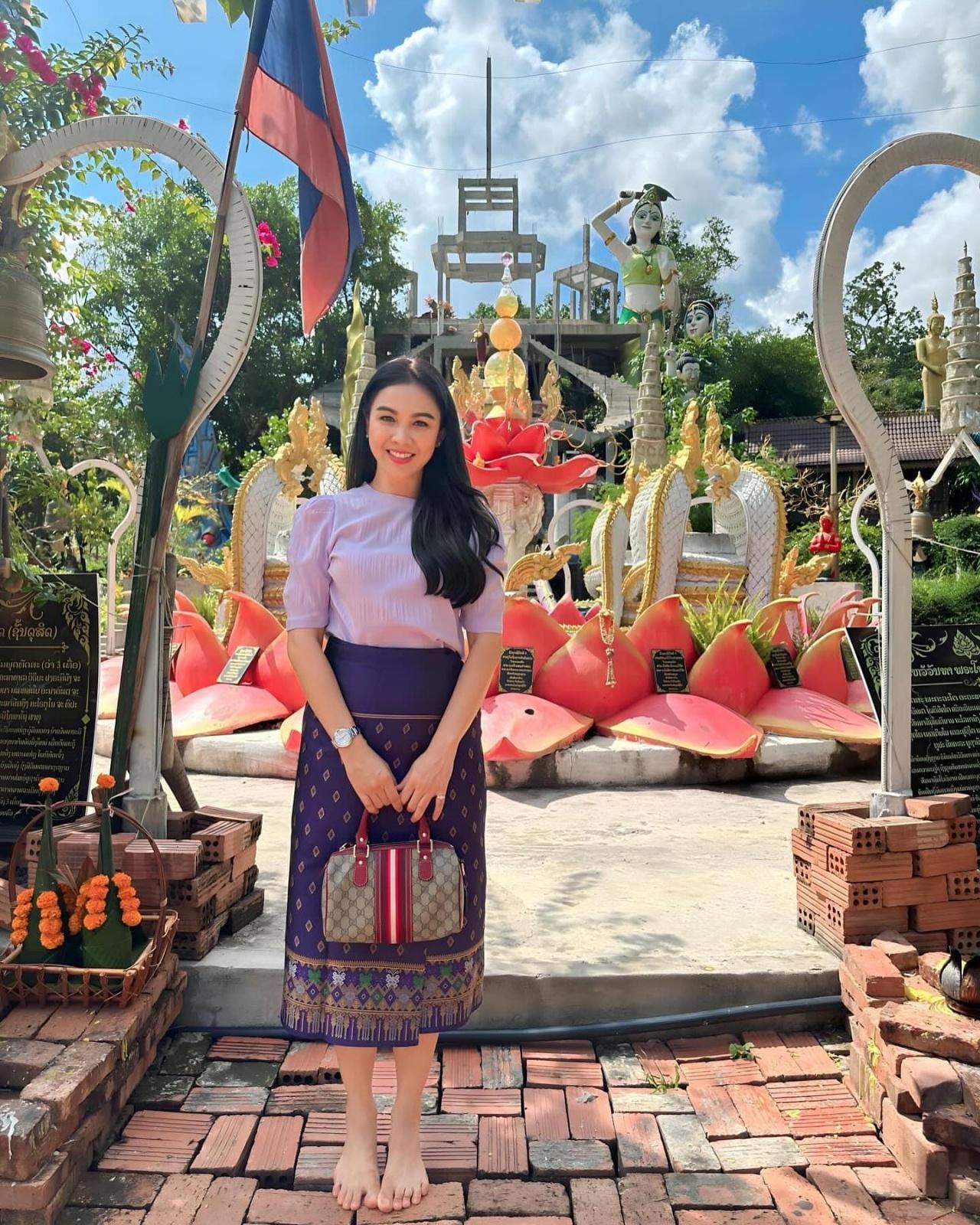 งานนี้ กบ ได้เผยภาพตัวเองในชุดนุ่งผ้าซิ่นลายสวยๆ ถ่ายคู่กับน้องชาย พร้อมเขียนแคปชั่นว่า "กราบปู่ขาว วัดสินไชยาราม เมืองเฟือง สปป.ลาว หนีลูกๆ ไปต่างประเทศภายใน 2 วัน อิๆ