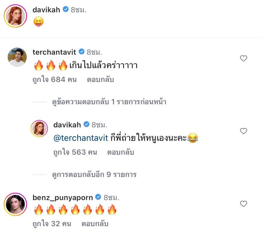 ซึ่งในทริปนี้ ใหม่ ดาวิกา เผยความเซ็กซี่ผ่านทางอินสตาแกรม @davikah กับภาพในชุดซีทรูสีขาวที่มองเห็นทะลุไปถึงข้างในว่าสวมใส่บิกินีสีขาว แถม เต๋อ ฉันทวิชช์ เป็นคนถ่ายภาพเซตนี้ให้ ภาพนิ่งว่าดีงามแล้ว ยังมีคลิปที่ ใหม่ เดินแบบสวยสับริมทะเลให้ได้ชมกันอีกด้วย