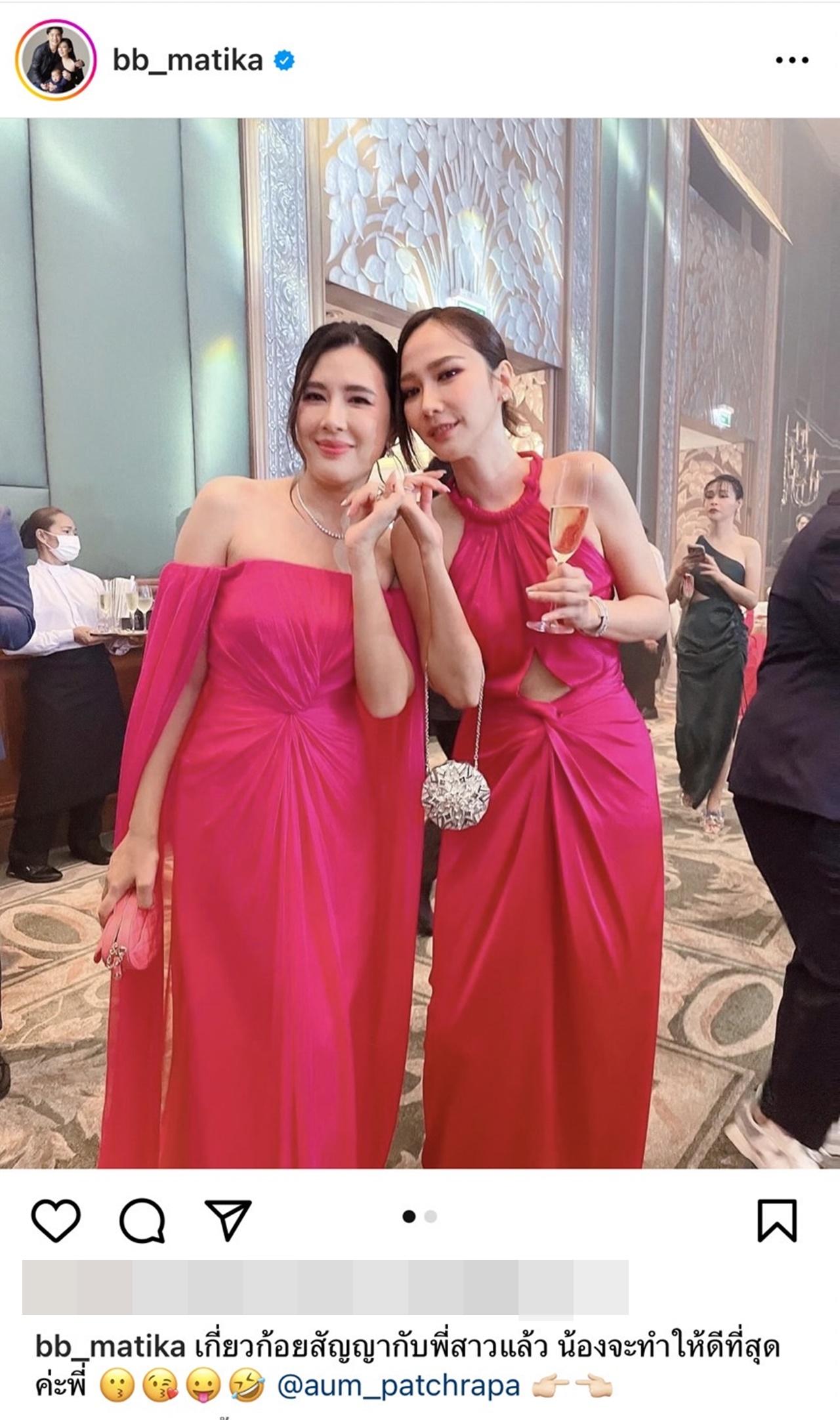 ล่าสุด อั้ม พัชราภา ก็ขอต่อคิวกับ พระแม่บี มาติกา บ้าง โดย บี มาติกา ได้เผยรูปถ่ายคู่ อั้ม พัชราภา ในงานแต่งงานของ เมย์-บิ๊ก ซึ่ง บี ก็ได้โพสต์ภาพดังกล่าวพร้อมเขียนแคปชั่นว่า "เกี่ยวก้อยสัญญากับพี่สาวแล้ว น้องจะทำให้ดีที่สุดค่ะพี่"