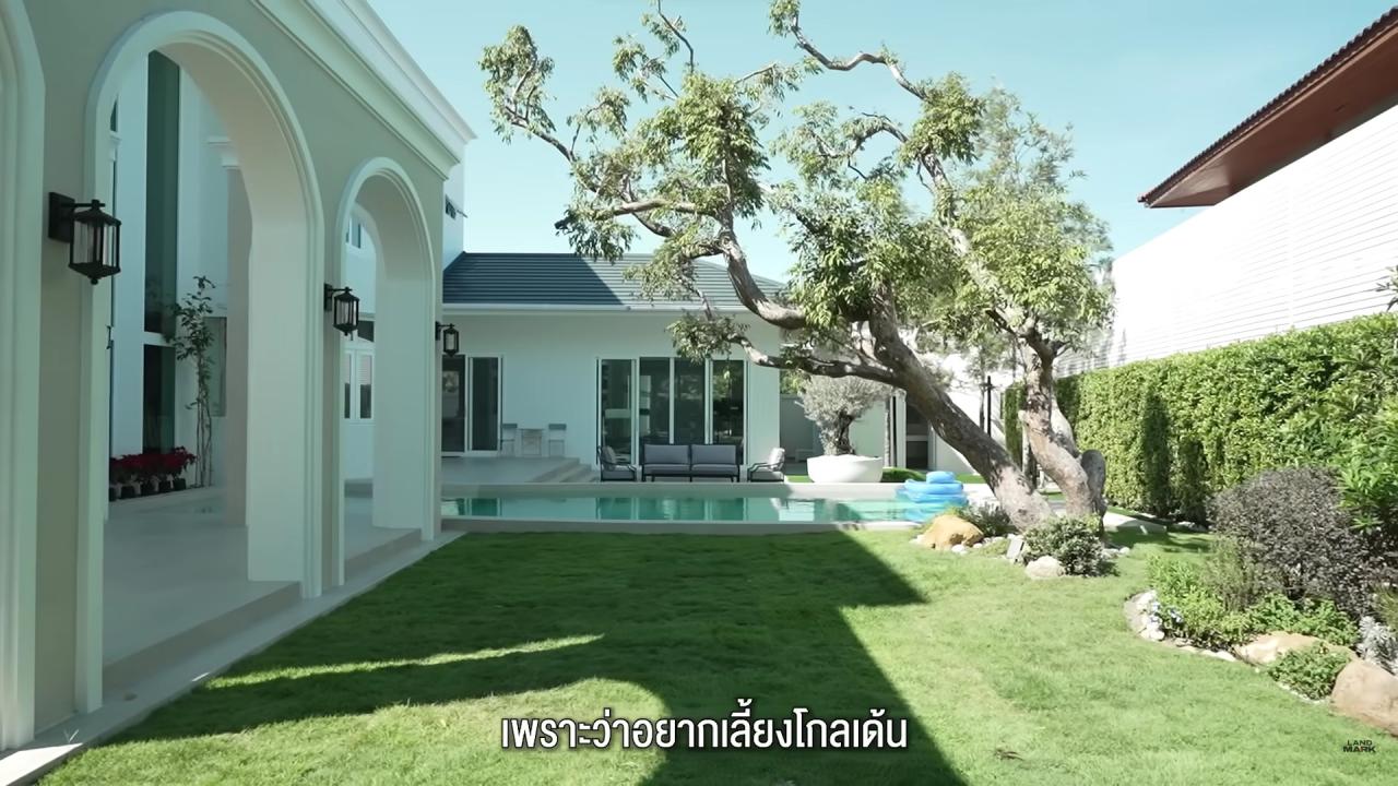 โดยในคลิป “เปิดเรือนหอครั้งแรก หมาก-คิม | Bookmark” ทางยูทูบแชนแนล Landmark หมาก พาแฟนๆ เข้าไปชมบ้านหรูของ หมาก-คิม ตั้งแต่บริเวณสวน ซึ่งได้พี่ที่สนิทอย่าง ดุ๊ก ภาณุเดช มาช่วยออกแบบจัดสวนให้ทั้งหมด ซึ่งหมากบอกว่าชื่นใจและชอบมากๆ ด้วยสไตล์เรียบง่าย สวนอังกฤษเบาๆ ส่วนโซนหลังบ้านตั้งใจให้มีพื้นที่สนามค่อนข้างเยอะ อยากเลี้ยงหมาโกลเด้น เผื่อมีโอกาสมานั่งเล่น ในอนาคตอาจจะมีเด็กๆ มานั่งร่มๆ ตรงนี้ ส่วนสระว่ายน้ำที่ทำไว้ก็ลงว่ายไปแล้ว 3 ที ไม่มีเวลาเท่าไร