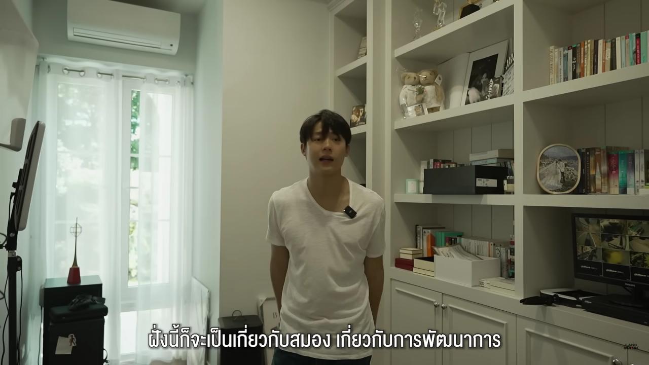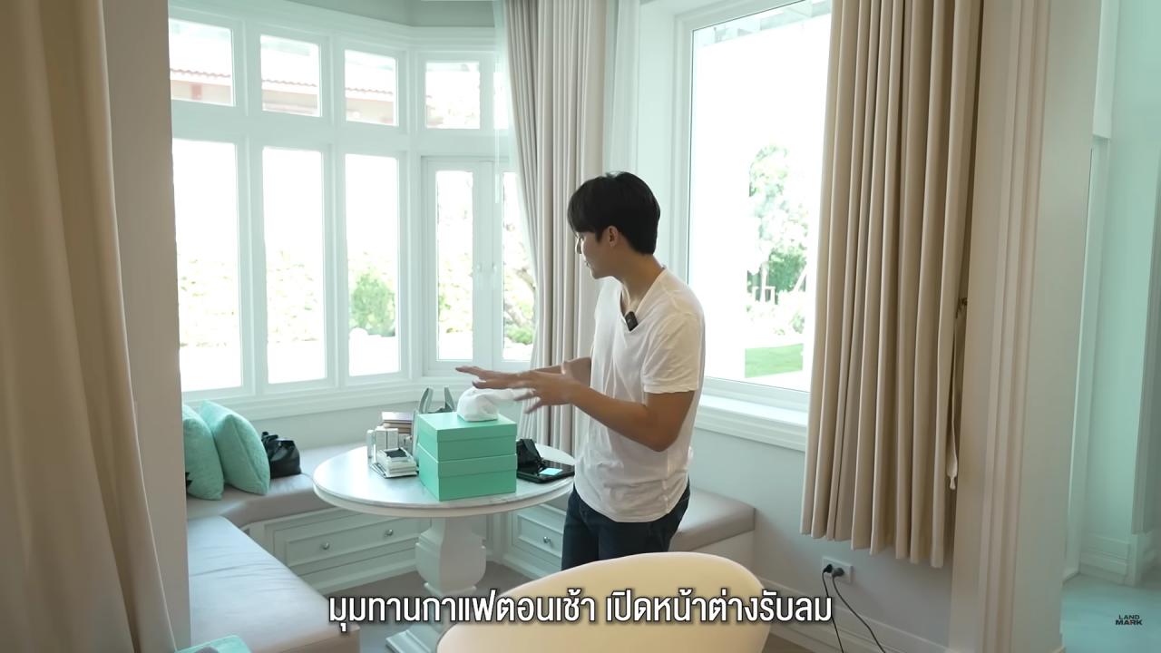 บ้านหลังนี้เป็นสไตล์คลาสสิกโมเดิร์น รู้สึกว่าสีขาวเป็นอะไรที่เรียบที่สุด สามารถแต่งอะไรได้ง่ายที่สุด เลยเลือกบ้านนี้เป็นสีขาว ส่วนห้องแต่งหน้าเป็นอีกห้องที่ใช้บ่อยมาก ไว้เม้าท์มอยกับพี่ช่างแต่งหน้าทำผม ผู้จัดการ มาถึงห้องรับแขกที่ตกแต่งแบบเรียบหรู ในส่วนห้องน้ำก็ถูกตกแต่งอย่างสวยงาม มีทั้งห้องน้ำสำหรับคนในบ้านและแขก มีลวดลายวอลเปเปอร์ดอกไม้ด้วย จากนั้นพามาที่ห้องทำงาน ซึ่งเป็นห้องสำหรับอ่านบท เก็บหนังสือ เอกสาร และเมื่อมาถึงห้องเอนเตอร์เทน ซึ่งเป็นห้องของหมากเอง สามารถตกแต่งอะไรก็ได้ มีทั้งโฮมเธียเตอร์ เป็นห้องรับแขกแบบ Private Living Room จากนั้น หมาก พาไปดูต้นคริสต์มาสต้นใหญ่ที่จัดเตรียมไว้เพื่อรอต้อนรับแขก