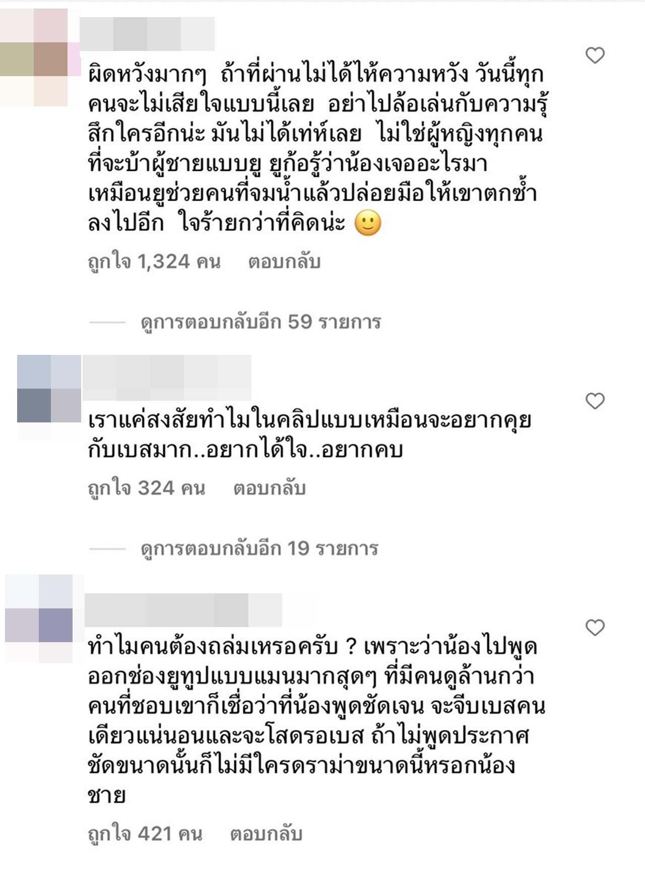 - ทำไมคนต้องถล่มเหรอครับ ? เพราะว่าน้องไปพูดออกช่องยูทูปแบบแมนมากสุดๆ ที่มีคนดูล้านกว่า คนที่ชอบเขาก็เชื่อว่าที่น้องพูดชัดเจน จะจีบเบสคนเดียวแน่นอนและจะโสดรอเบส ถ้าไม่พูดประกาศชัดขนาดนั้นก็ไม่มีใครดราม่าขนาดนี้หรอกน้องชาย