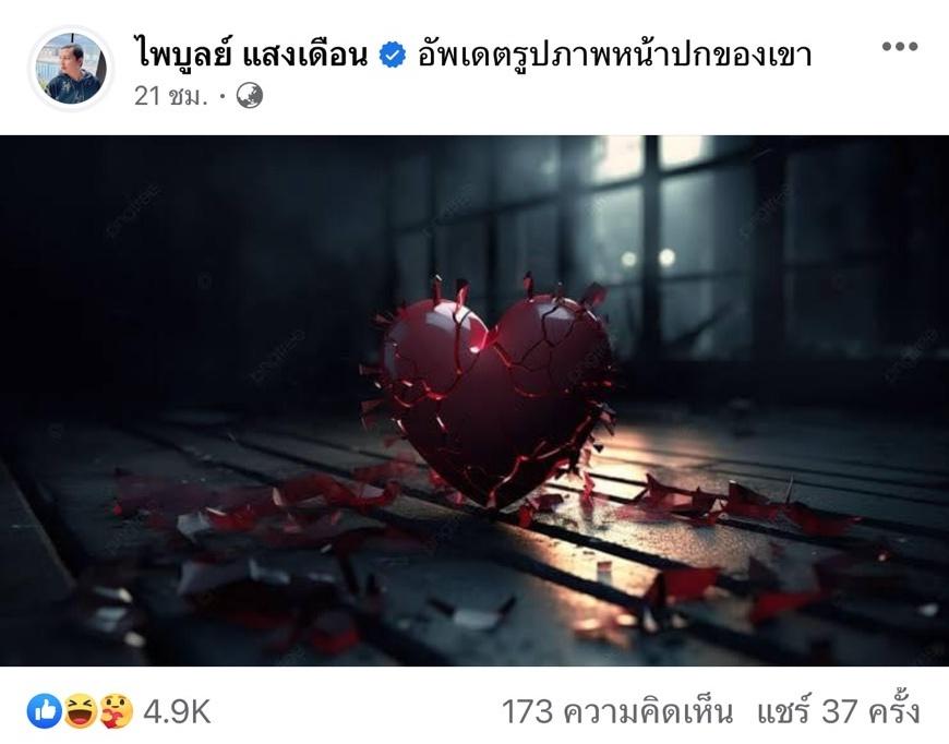 ซึ่งหลังจากที่ กระต่าย พรรณนิภา ประกาศแยกทาง ก็เกิดกระแสวิพากษ์วิจารณ์ต่างๆ ตามมามากมาย ด้าน ครูไพบูลย์ ก็ได้เคลื่อนไหวเฟซบุ๊กด้วยการโพสต์อีโมจิรูปร้องไห้ และอัปเดตรูปภาพหน้าปกเป็นรูปหัวใจแตกสลาย โดยมีแฟนๆ ที่ต่างเข้ามาให้กำลังใจนับพันข้อความ