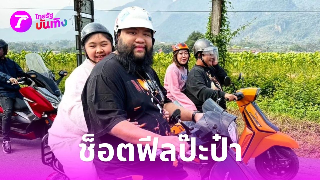 โดยในภาพ พ่อกอล์ฟ เป็นคนขี่รถให้ น้องชูใจ ลูกสาวสุดน่ารัก ซ้อนท้าย ขณะที่ แม่เบลล์ นั่งซ้อนท้ายรถมอเตอร์ไซค์อีกคัน พร้อมเขียนแคปชั่นว่า "ครั้งแรกที่พาชูใจออกทริป" พ่อกอล์ฟ จึงบอก น้องชูใจ ด้วยความเป็นห่วง กลัวลูกจะตกรถว่า "กอดเอวป๊ะป๋าไว้นะลูก" แต่ น้องชูใจ กลับช็อตฟีลป๊ะป๋า โดยการถามกลับว่า "ตรงไหนคือเอวคะ"