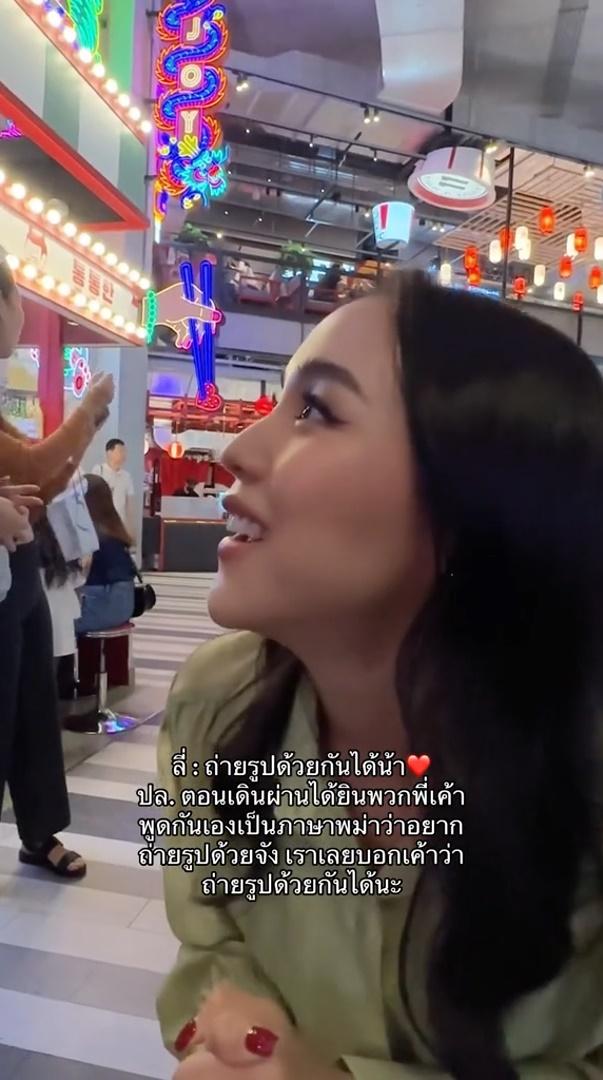 เมื่อแฟนๆ เข้ามาขอถ่ายรูปคู่กับ ลิลลี่ เรียบร้อยแล้ว แฟนคลับชายก็บอกว่า “รักนะครับๆ” ลิลลี่ ก็ตอบกลับไปว่า “รักค่า” และต่างยกมือไหว้ขอบคุณกันและกัน ซึ่งแฟนคลับชายบอกอีกว่า ตอนแรกไม่รู้ว่า ลิลลี่ พูดภาษาพม่าได้ มารู้ตอนหลัง ซึ่ง ลิลลี่ ก็บอกว่า “หนูลูกครึ่งไทย-พม่า ค่ะ” แฟนคลับชายก็ตอบว่า “อ๋อ และผมก็เห็นพี่พูดพม่าใน TikTok” ลิลลี่ก็บอกว่า “อ๋อ ใช่ค่า ที่หนูถ่ายกับยาย ขอบคุณมากๆ นะคะ” ซึ่งหลังจากที่ได้เจอแฟนๆ ทำเอา ลิลลี่ ใจฟูสุดๆ และบอกว่าเห็นคนพม่าเหมือนกันแล้วรู้สึกมีความสุข