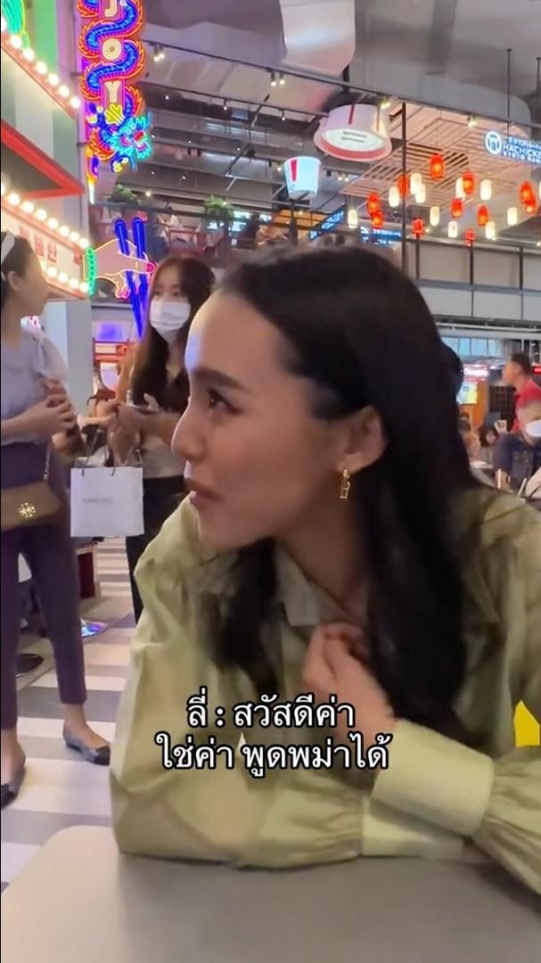 โดยในคลิปนี้แฟนๆ เข้ามาทัก ลิลลี่ ภัณฑิลา ด้วยภาษาพม่า ก่อนที่ ลิลลี่ จะตอบกลับเป็นภาษาพม่าไปว่า “สวัสดีค่า ใช่ค่า พูดพม่าได้” แฟนคลับชายพูดว่า “ผมรู้ครับ เมื่อกี้เลยกำลังจะขอพูดให้ฟังหน่อยครับ น่ารักจังเลยครับ” ทำเอาลิลลี่ยิ้มเขินก่อนไหว้และบอกว่า “ขอบคุณนะคะ” ก่อนจะหันไปถามแฟนคลับสาวว่า “แล้วพี่เป็นคนพม่าใช่มั้ยคะ” จากนั้นแฟนคลับหญิงก็ตอบว่า “สวยจังเลยค่ะ ตัวจริงสวยกว่าในจออีกค่ะ” งานนี้ ลิลลี่ มีเขินเลยทีเดียว ก่อนจะบอกกับทั้งคู่ว่าถ่ายรูปด้วยกันได้นะ