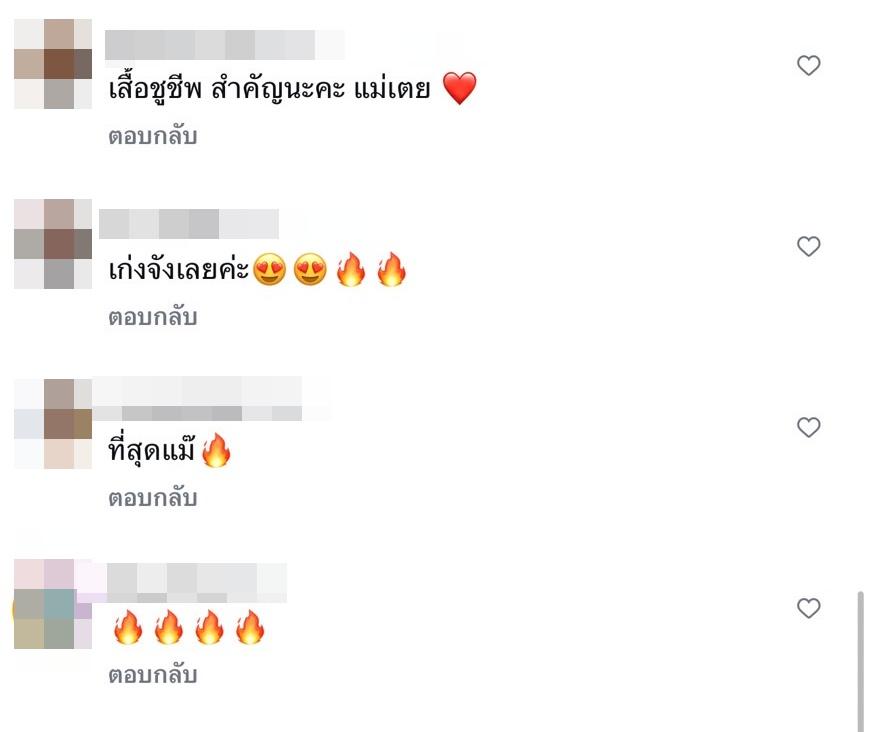 แต่งานนี้นอกจากจะมีแฟนๆ แห่คอมเมนต์แซวความแซ่บของคุณแม่ใบเตยพร้อมทั้งส่งอีโมจิไฟลุกแล้ว ก็มีชาวเน็ตบางรายที่อดเป็นห่วงไม่ได้ โดยบอกว่า “เสื้อชูชีพ สำคัญนะคะ แม่เตย” ด้วย.