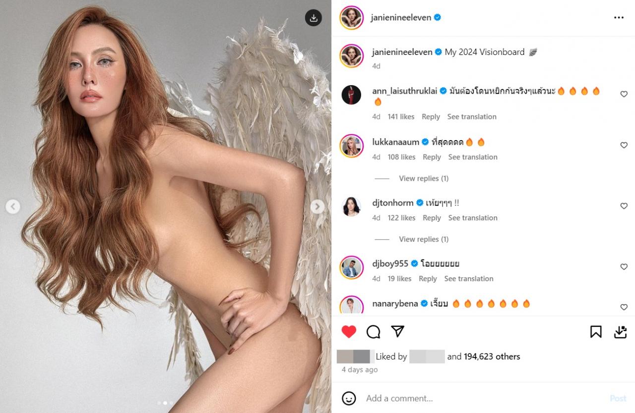 ท่ามกลางคอมเมนต์จากคนในวงการบันเทิง และแฟนๆ ที่เข้ามาแสดงความคิดเห็นเต็มไอจี อาทิ โอ้ยย!! สุดพลัง ดีไปหมด, ใครจะต้านคะแม่, ที่สุด, แม่เจ้าาาาาาา นี่ยังไม่เดือนเมษายนเลยนะ ร้อนมากจ้าาาา, โอยยยตายแล้ววววววววววววววววว, ร้อนรักมาก February มาแน่, เกินไปมากกกกก ฯลฯ