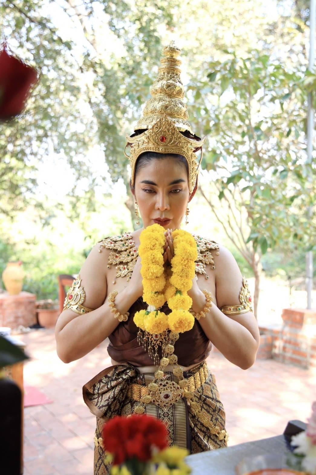 ซึ่งตนได้มีการจัดเตรียมชุดเสื้อผ้า และบังเอิญมากๆ ที่ชุดเครื่องแต่งกายที่ตนสวมใส่ มีความคล้ายๆ กับชุดขององค์แม่ท้าวศรีสุดาจันทร์ที่อยู่ในศาล ตนจึงรู้สึกขนลุกตลอดเวลา เหมือนองค์แม่ได้พยายามสื่อสารว่าท่านยังอยู่ที่นี่และท่านมีอยู่จริง