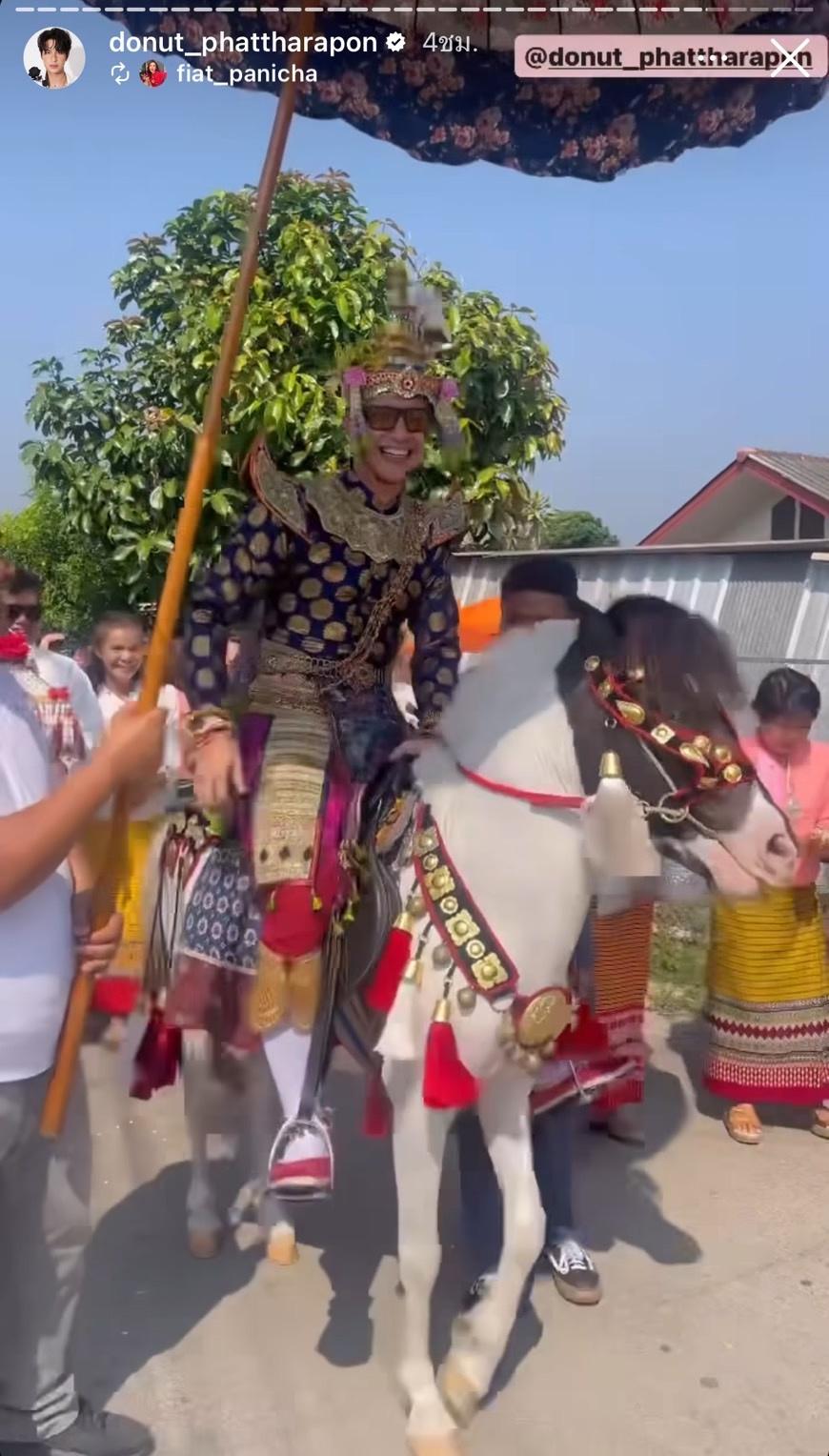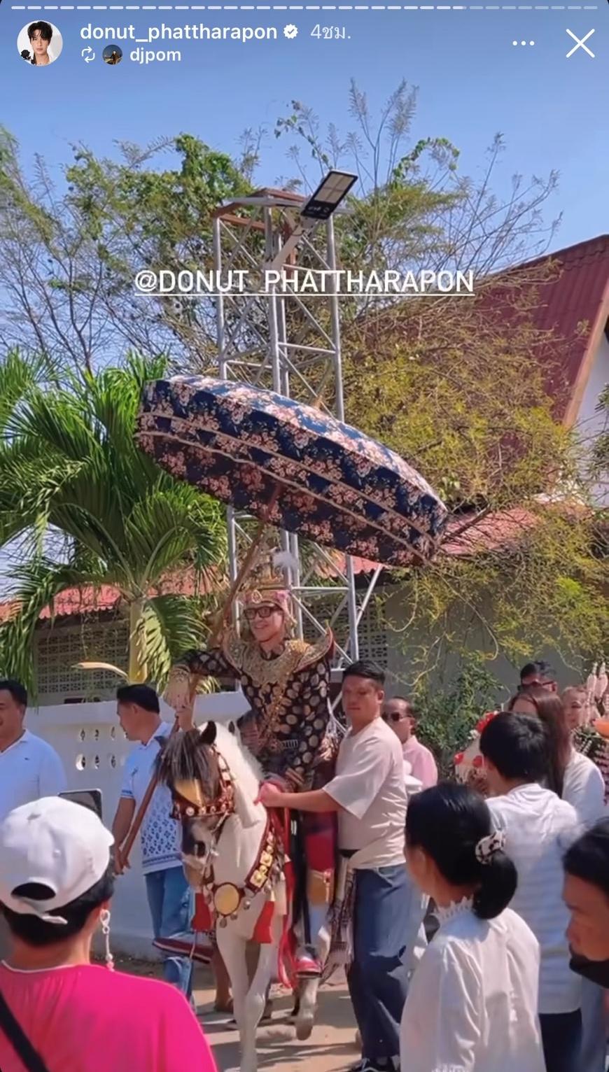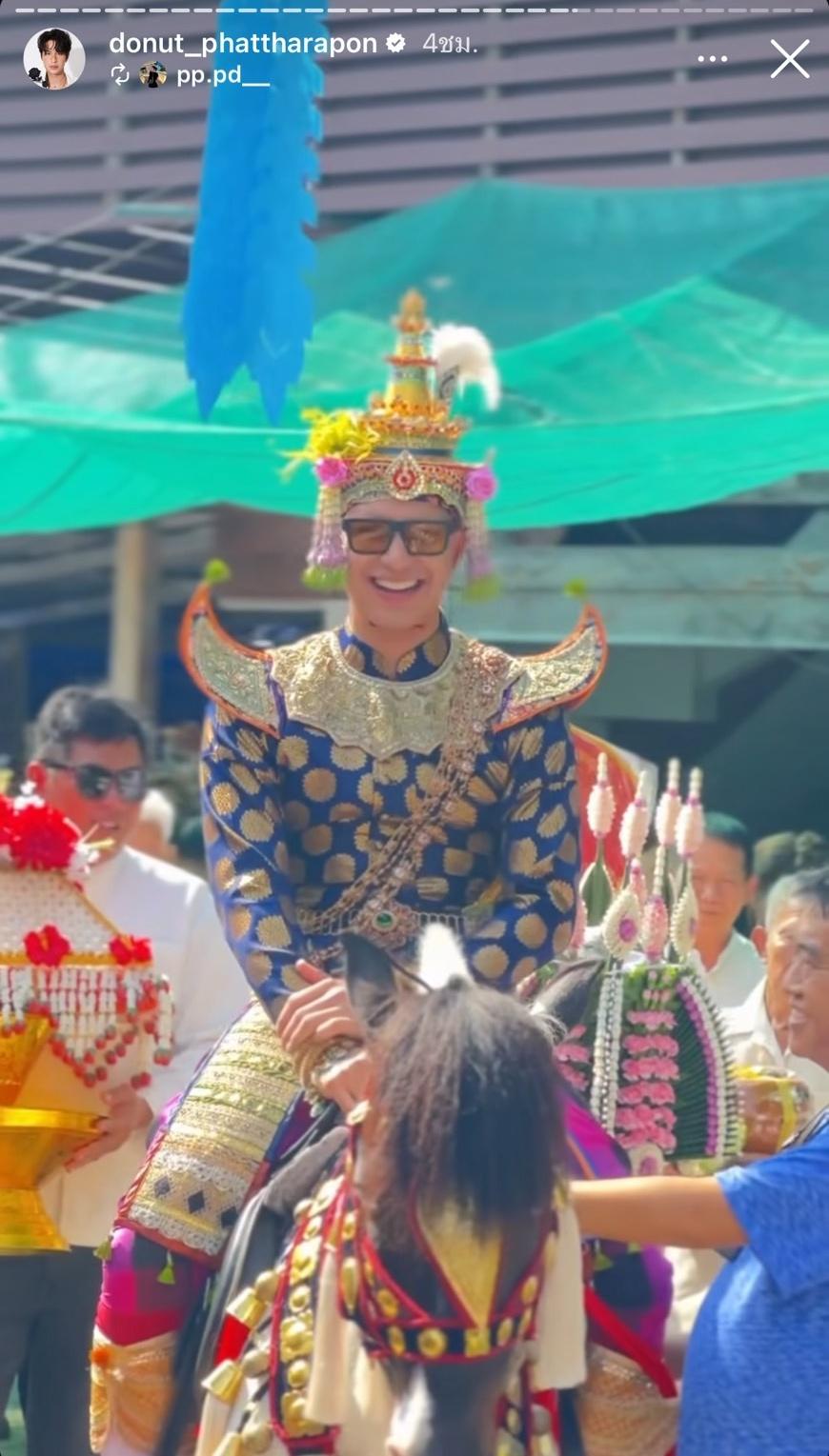 ล่าสุดเมื่อช่วงเช้าวันที่ 13 ก.พ. 2567 ที่ผ่านมา โดนัท ภัทรพลฒ์ ก็ได้ฤกษ์ดีเข้าพิธีอุปสมบท ณ วัดหางดง จ.เชียงใหม่ ซึ่งเป็นจังหวัดบ้านเกิดของเจ้าตัว บรรยากาศในช่วงเช้ามีพิธีปลงผม จากนั้นได้เข้าพิธีแต่งลูกแก้วและแห่ลูกแก้ว ซึ่งเป็นพิธีแบบล้านนา โดยแห่จากบ้านไปที่วัดหางดง ซึ่งแต่งกายด้วยชุดสไตล์ล้านนาขึ้นม้าแห่ตามแบบฉบับของการบวชทางภาคเหนือ เพื่อเข้าพิธีฮ้องขวัญ (เรียกขวัญ) และเข้าโบสถ์ เพื่อเข้าพิธีบรรพชา และอุปสมบท