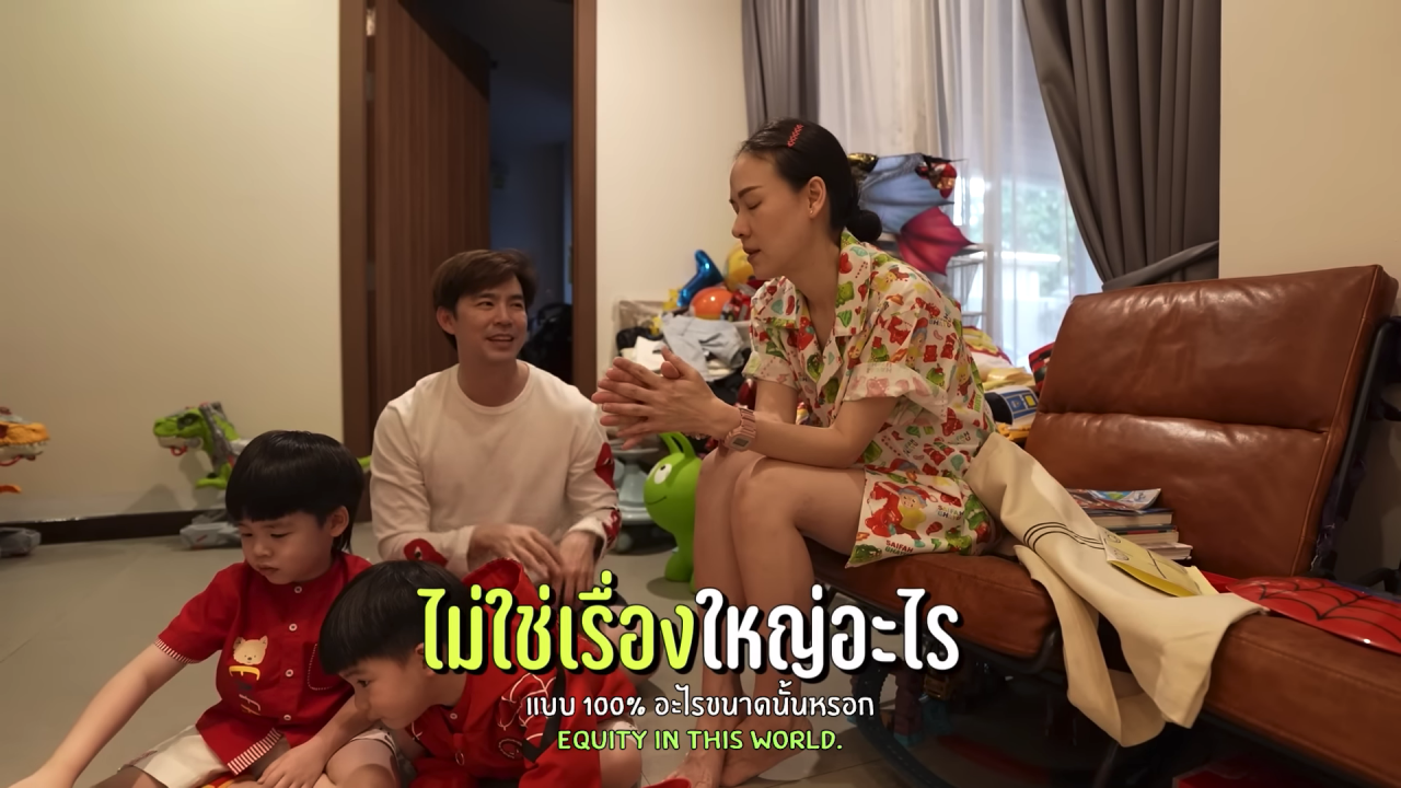 ออย เสริมต่อ “คือเขาสามารถที่จะฟีลฟรีได้ในการที่เขาจะตัดสินใจ ก็ไม่อยากให้ไปจับผิดกันขนาดนั้น เพราะสุดท้ายแล้วเดี๋ยวมันจะกลายเป็นแบบคนให้เขาจะเสียใจที่ถูกตำหนิ ทั้งๆ ที่เขาก็เจตนาดี มันก็จะกลายเป็นคอมเมนต์ที่อ่านแล้วเครียด เพราะว่าจริงๆ การที่ลูกๆ เราหรือว่าครอบครัวเรามาอยู่ตรงนี้ เราก็อยากที่จะให้ทุกคนมีความสุขไม่มากก็น้อย ก็อยากให้ทุกคนเป็นพลังบวก ก็ขอบคุณที่รักแล้วก็เอ็นดูลูกๆ ของเรานะคะ หวังว่าบ้านเราจะเป็นส่วนหนึ่งที่สร้างรอยยิ้มให้กับทุกคน”.