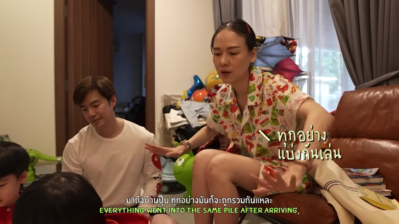 ด้าน ออย เสริมว่า “มาถึงบ้านปุ๊บ ทุกอย่างมันจะถูกรวมกันแหละ แล้วสุดท้ายก็คือไม่มีของใครทั้งนั้น โอเค เขาอาจจะมีแบบว่าของพี่ธีร์เป็นไอรอนแมน แล้วของน้องพีร์เป็นสไปเดอร์แมน เขาก็จะมีเป็นแบบหลักๆ ของเขา แต่สุดท้ายมันก็เล่นด้วยกัน ไม่ได้แยก”