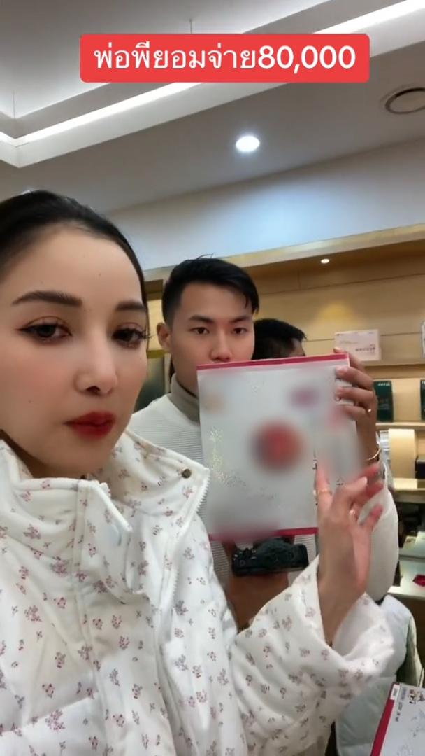 แต่สุดท้าย สายเปย์ตัวจริงอย่าง พ่อพี ก็ตัดสินใจรูดบัตรซื้อโสมราคาแพงที่สุดในร้าน กล่องละ 80,000 บาท ให้ แม่แพท พร้อมบอกเหตุผลที่ซื้อให้ว่า "ก็เห็นเขาบอกว่าช่วยเรื่องฮอร์โมน ใครที่แบบขี้เหวี่ยง ขี้วีน หงุดหงิด กินอันนี้แล้ว มันจะดีขึ้น มันจะปรับ มันจะเป็นคนอารมณ์ดี ก็เลยซื้อให้ไปเลย"