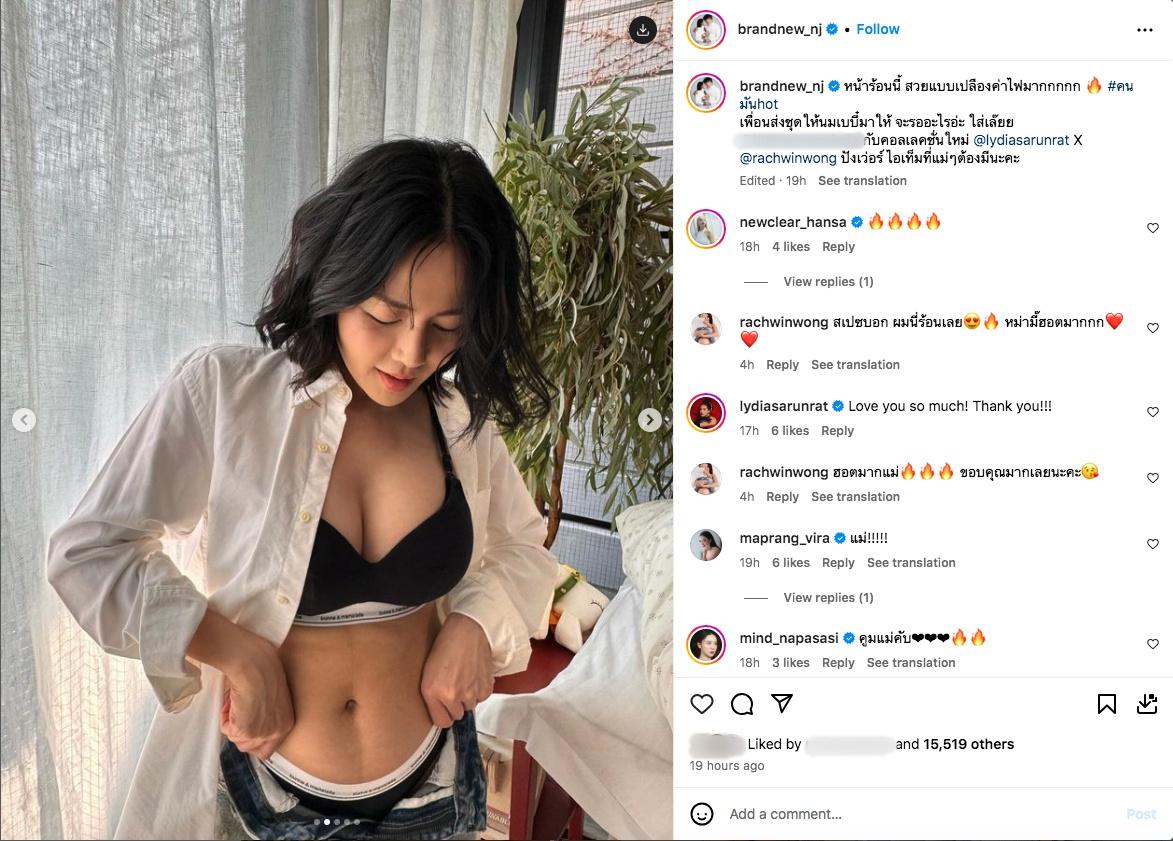 แต่ดูเหมือนงานนี้บรรดาเพื่อนๆ ในวงการกับแฟนๆ ต่างโฟกัสผิดจุดทั้งไอจี เพราะเห็นความเซ็กซี่ของคุณแม่นิวแบบเต็มตา ทำเอาแห่คอมเมนต์แซวรัวๆ อาทิ นิวเคลียร์ หรรษา ส่งอีโมจิไฟลุก, มะปราง วิรากานต์ “แม่!!!!!” ก้อย รัชวิน “ฮอตมากแม่ (อีโมจิไฟลุก) ขอบคุณมากเลยนะคะ”, พลอย อัยดา “แม๊ (อีโมจิไฟลุก) ดู๊มมมมม”, มายด์ ณภศศิ "คูมแม่คับ (อีโมจิหัวใจกับไฟลุก)" ฯลฯ.