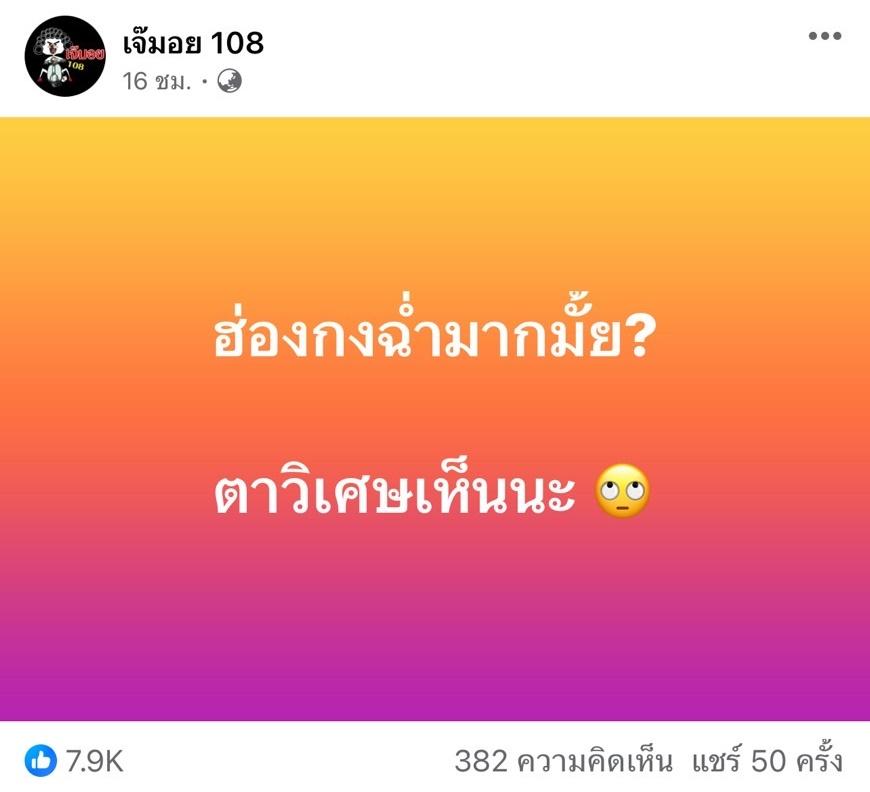 นอกจากนี้ เพจบันเทิงดัง เจ๊มอย 108 ก็ได้โพสต์ข้อความปริศนาไว้ว่า “ฮ่องกงฉ่ำมากมั้ย? ตาวิเศษเห็นนะ” ท่ามกลางคอมเมนต์จากแฟนๆ ที่ต่างเข้ามาแสดงความคิดเห็น และมีบางส่วนที่พูดถึง ตงตง กับ สาลี่ ด้วย.