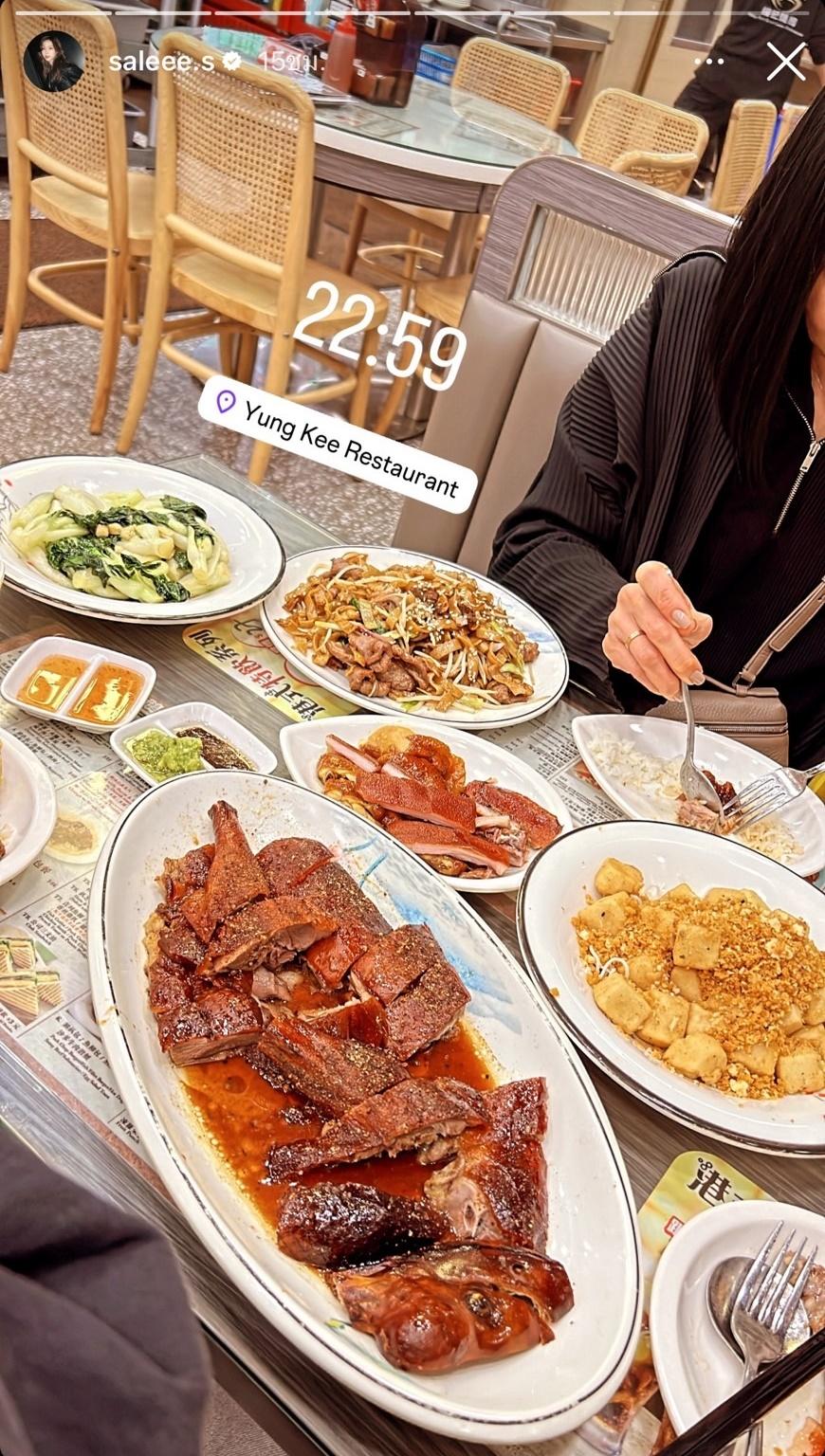 เมื่อเข้าไปดูในไอจีสตอรี่ก็พบว่าโพสต์ภาพและเช็กอินที่วัดดังฮ่องกงอย่างวัดแชกงหมิว (วัดกังหัน) ในเวลาใกล้กัน และฝ่าย สาลี่ ยังโพสต์คลิปตอนไปฮ่องกงดิสนีย์แลนด์ รวมถึงภาพไปทานข้าวที่ร้านดัง Yung Kee Restaurant ลงในไอจีสตอรี่ด้วย