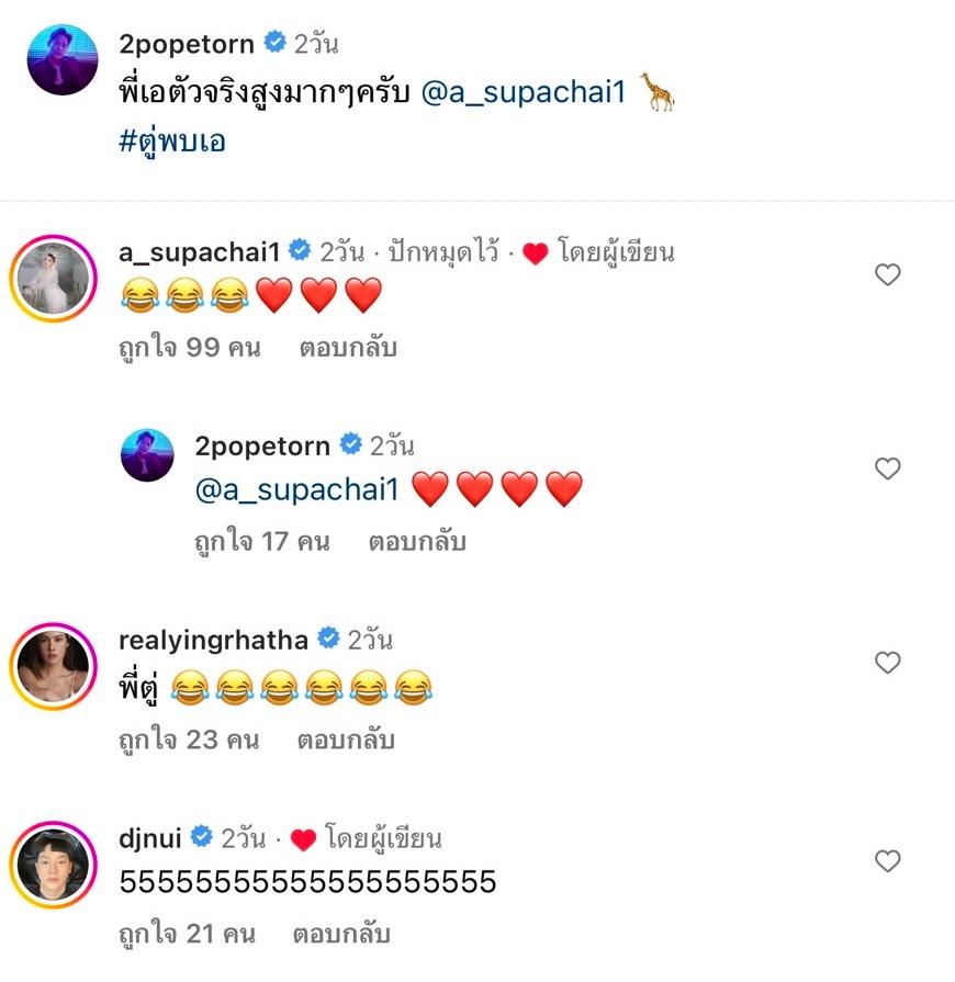 ล่าสุด ตู่ ภพธร เผยคลิปนาทีที่ได้เจอ เอ ศุภชัย ศรีวิจิตร ผู้จัดการดาราชื่อดัง ที่มักจะทำคลิปขายาวลงในไอจีบ่อยๆ จนหลายคนแซวรัวๆ พร้อมทั้งเขียนแคปชั่น “พี่เอตัวจริงสูงมากๆ ครับ @a_supachai1 #ตู่พบเอ”