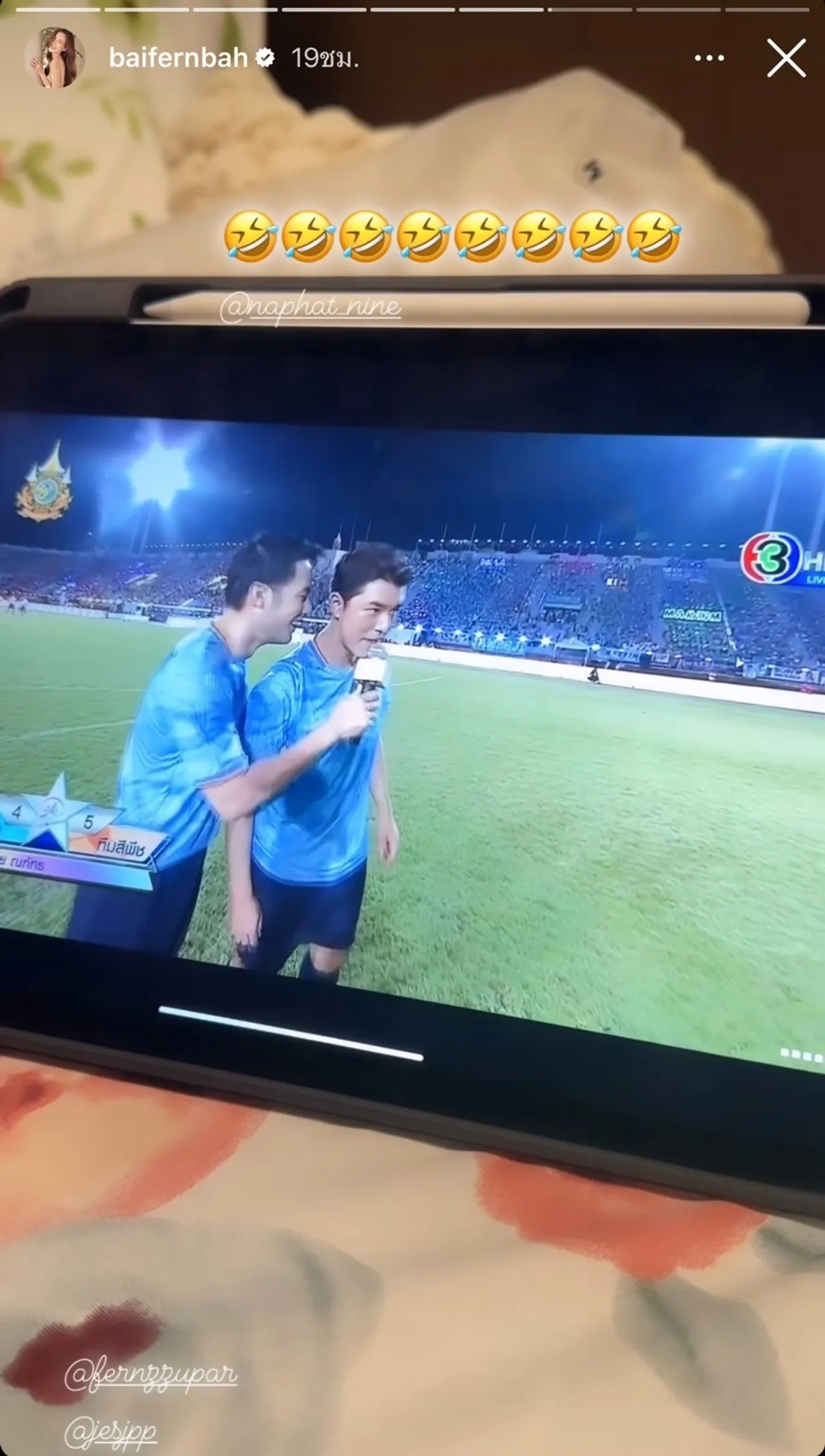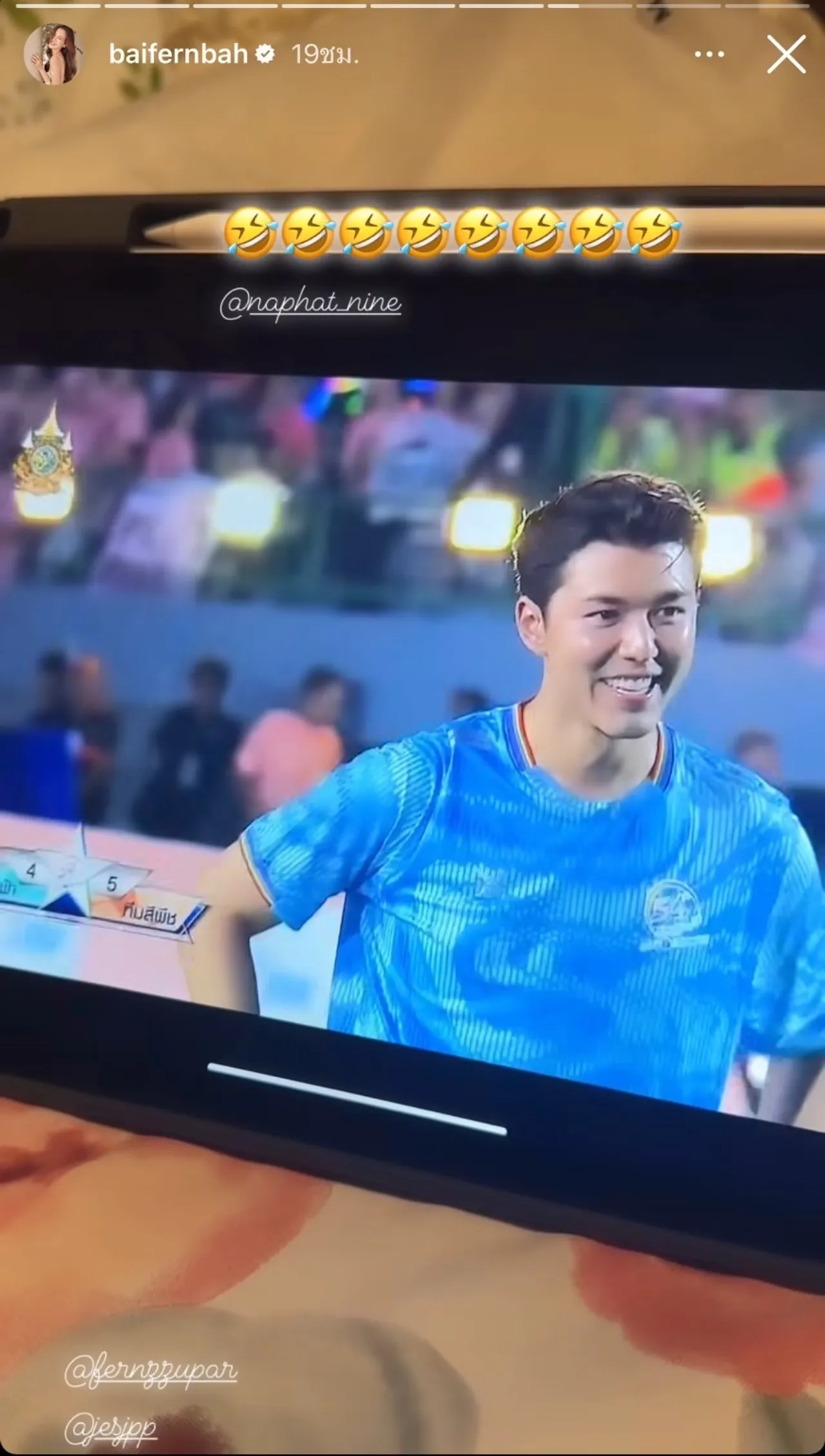 เมื่อถึงตอนที่ต้องโชว์ฝีเท้าเตะลูกโทษ บอย ปกรณ์ ถาม นาย ณภัทร ว่า ลูกโทษนี้เพื่อใคร ซึ่ง นาย ก็ตอบกลับแบบตรงไปตรงมาว่า จุดโทษนี้เพื่อ ใบเฟิร์น พิมพ์ชนก เรียกเสียงกรี๊ดสนั่นเลยทีเดียว ด้าน ใบเฟิร์น ที่แม้จะติดงาน แต่ก็ไม่พลาดที่จะให้กำลังใจ นาย นั่งดูการแข่งขันผ่านทางออนไลน์ พอได้ยินว่า นาย ตั้งใจยิงลูกโทษเพื่อ ใบเฟิร์น ก็กรี๊ดสนั่นพร้อมกับพี่ๆ ทีมงาน ช่างแต่งหน้า