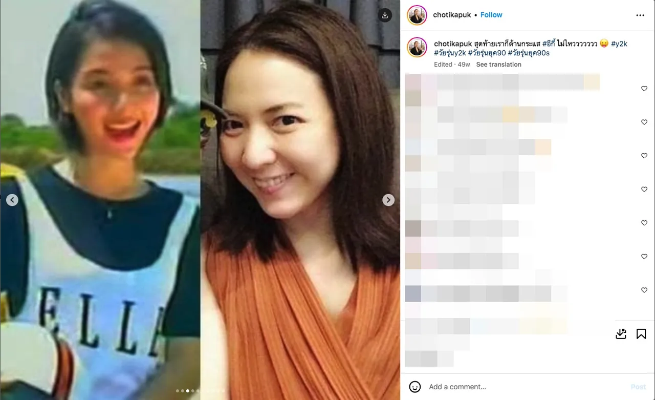 โดยในอินสตาแกรม @chotikapuk ปุ๊ก โชติกา ได้โพสต์ภาพตัวเองในโฆษณาน้ำมันเครื่อง และเทียบกับภาพตัวเองในปัจจุบัน บอกเลยว่าแม้เวลาจะผ่านมานานกว่า 30 ปี ปัจจุบันยังดูสวยหน้าเด็กจริงๆ จ้า.