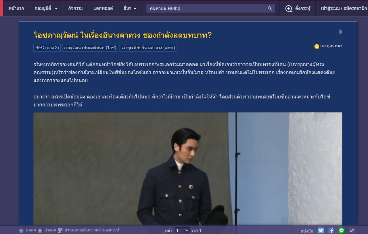 กลายเป็นประเด็นร้อนทันที เมื่อมีชาวเน็ตรายหนึ่งตั้งกระทู้ถามในเว็บไซต์ pantip.com ถึงพระเอกหนุ่มหน้าใส ไอซ์ ภาณุวัฒน์ เปรมมณีนันท์ ว่ากำลังถูกช่อง 3 ลดบทบาทจากพระเอกสู่พระรองหรือไม่ หลังผลงานละครเรื่องล่าสุด “เจ้าคุณพี่กับอีนางคำดวง” ได้รับบทรอง ซึ่งมีคู่จิ้นสุดฮอตอย่างพระเอกหนุ่ม เจมส์ จิรายุ ตั้งศรีสุข และนางเอกสาว เบลล่า ราณี แคมเปน แสดงนำ