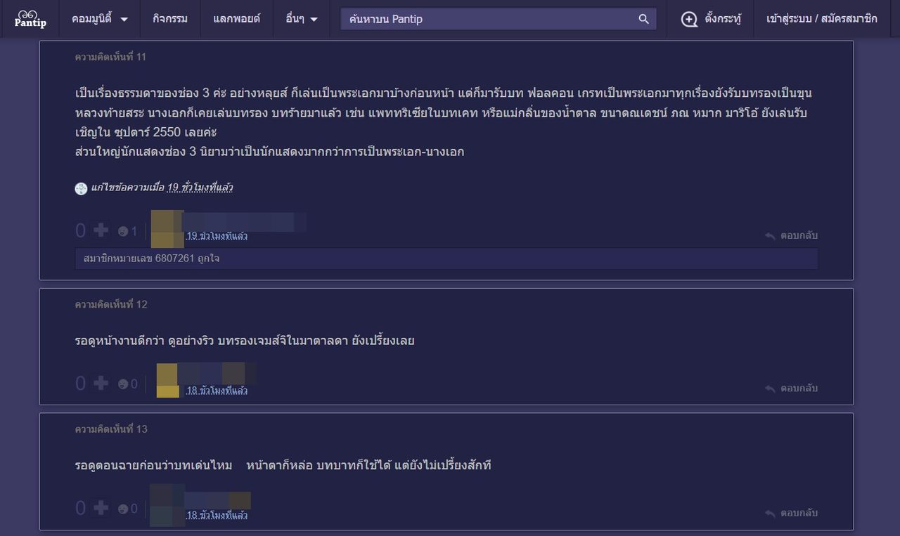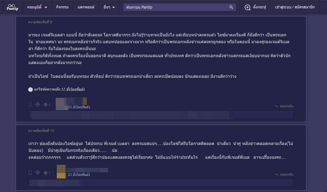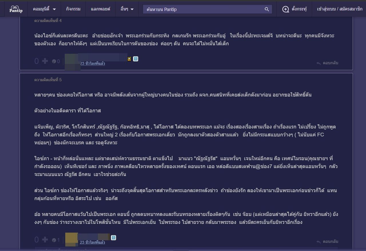 หรือว่าช่องกำลังจะเปลี่ยนโพสิชั่นของไอซ์แล้ว อาจจะมาแนวปั้นจั่น/มาสุ หรือเปล่า บทเด่นแต่ไม่ใช่พระเอก เรื่องกลเกมรักน้องแสดงดีนะ แต่บทอาจจะแกงไปหน่อย อย่างว่า ละครเปิดน้อยลง ต้องเอาลงเรื่องเดียวกันไปหมด ดีกว่าไม่มีงาน เป็นกำลังใจให้จ้า โดยส่วนตัวเราว่าบทเด่นขโมยซีนอาจจะเหมาะกับไอซ์มากกว่าบทพระเอกก็ได้”