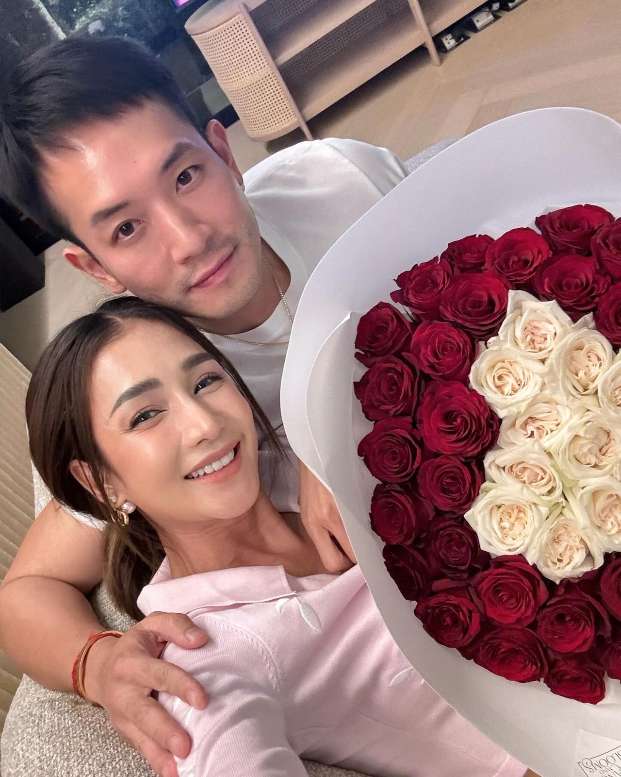 “ใช่ มันก็ 15 ปีแล้ว เนยชอบแบบไม่ต้องมาหวานมากหรอก แต่ใช้ชีวิตแบบปกติสุข ไม่ทะเลาะกันก็โอเคแล้ว เราก็พยายามเติมความหวานกัน บางทีมีช่วงที่เราลืมๆ ใส่ใจดูแล บางทีเดินผ่านกัน หอมกันนิดนึงก็โอเค ใจฟู เติมกำลังใจ บางทีเราลืมไป พอมีอะไรมาสะกิดนิดนึง หรือเราไปอ่านเจอ เราก็กลับมาหน่อย เพื่อไม่ให้ชินชากันไป ต้องค่อยๆ เติม อย่างผู้จัดการเนยก็บอกให้ไปกินข้าวด้วยกันข้างนอกบ้านบ้าง (หัวเราะ) ให้เวลากันบ้าง แต่เนยกับสามีชอบอยู่บ้านทั้งคู่ หาอะไรทำ กินอะไรกันก็แฮปปี้แล้ว”