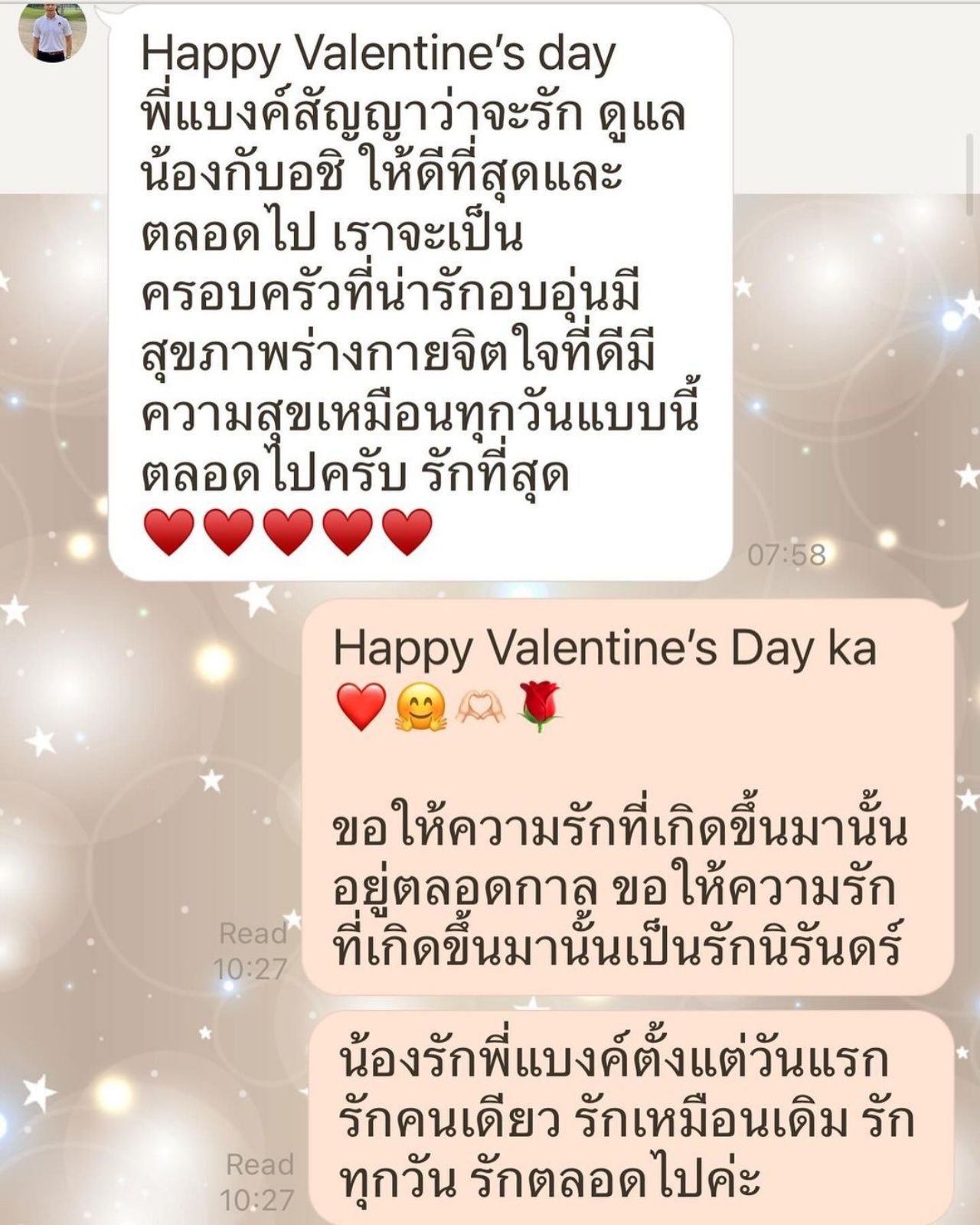 สิ่งนี้คือความสุขเล็กๆในแต่ละวันที่ทำให้ใจเต็มไปด้วยพลังบวก และมีค่าที่สุดต่อความทรงจำของเรา 3 คน ขอบคุณพี่แบงค์นะคะ So proud of you ka"