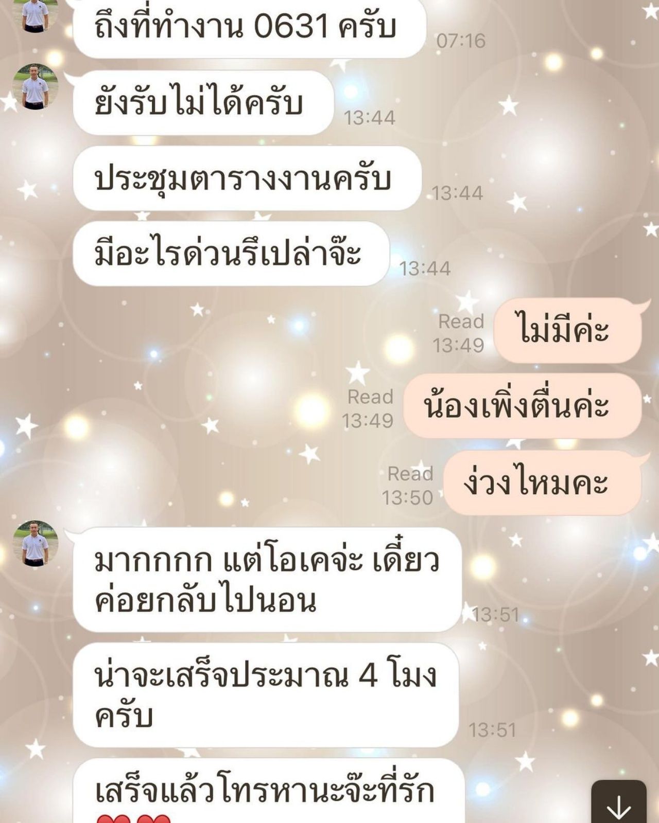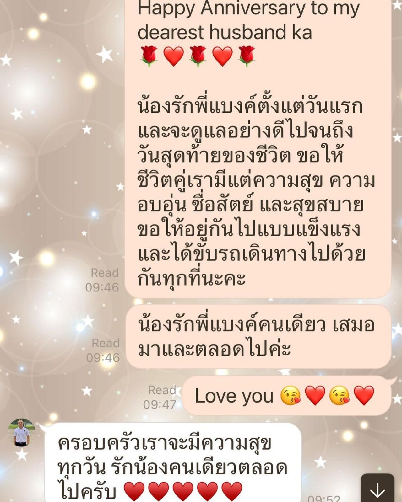 ล่าสุด โบ ชญาดา ได้เผยแชตที่คุยกันกับสามี ซึ่งคู่นี้มักจะส่งข้อความหากันทุกเช้า คุยกันทุกวัน และรายงานอีกฝ่ายตลอดว่ากำลังทำอะไรและมักจะส่งรูปให้ได้เห็นด้วย อีกทั้ง แบงค์ ยังเป็นห่วง น้องอชิ ขอขับรถไปรับไปส่งเท่าที่จะทำได้ ทำให้เห็นถึงความใส่ใจอย่างมาก ซึ่ง แม่โบ ก็ได้เขียนแคปชั่นบอกว่า