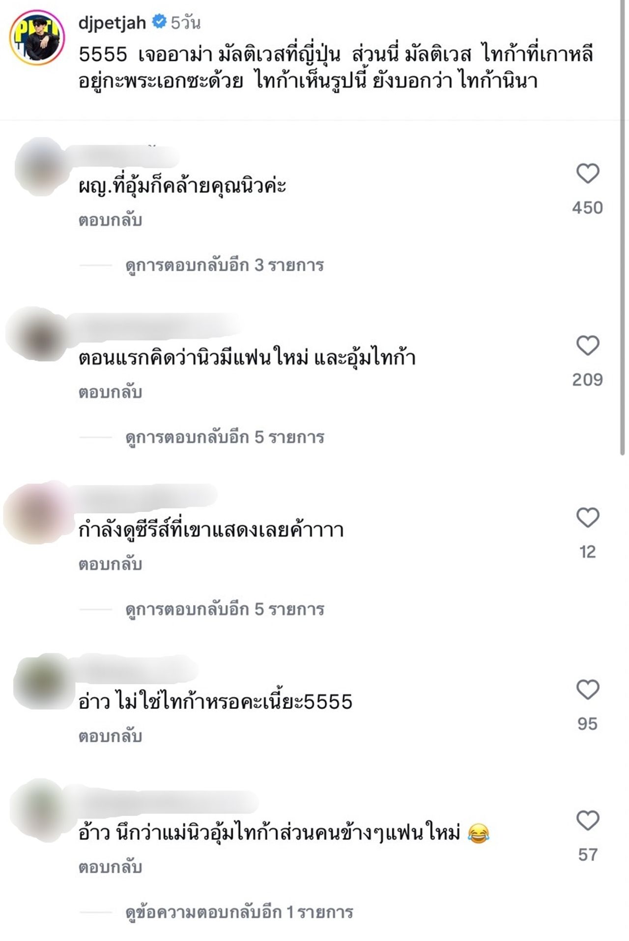 ส่องคอมเมนต์ต่างก็บอกว่าเหมือน น้องไทก้า จริง แต่ที่พีกกว่านั้นคือนักแสดงหญิงในรูปที่อุ้มนักแสดงเด็กคนนี้ก็หน้าคล้าย นิวเคลียร์ ไปอีก อาทิ ผญ.ที่อุ้มก็คล้ายคุณนิวค่ะ, ตอนแรกคิดว่านิวมีแฟนใหม่ และอุ้มไทก้า, อ้าว นึกว่าแม่นิวอุ้มไทก้าส่วนคนข้างๆ แฟนใหม่, ละฉันเห็นแว๊บแรก คิดว่าแม่นิวกะพี่ไท พอมาอ่าน อ่าวไม่ใช่, เหมือนมากกค่ะ ทั้งไทก้าและแม่นิวเลย ฯลฯ