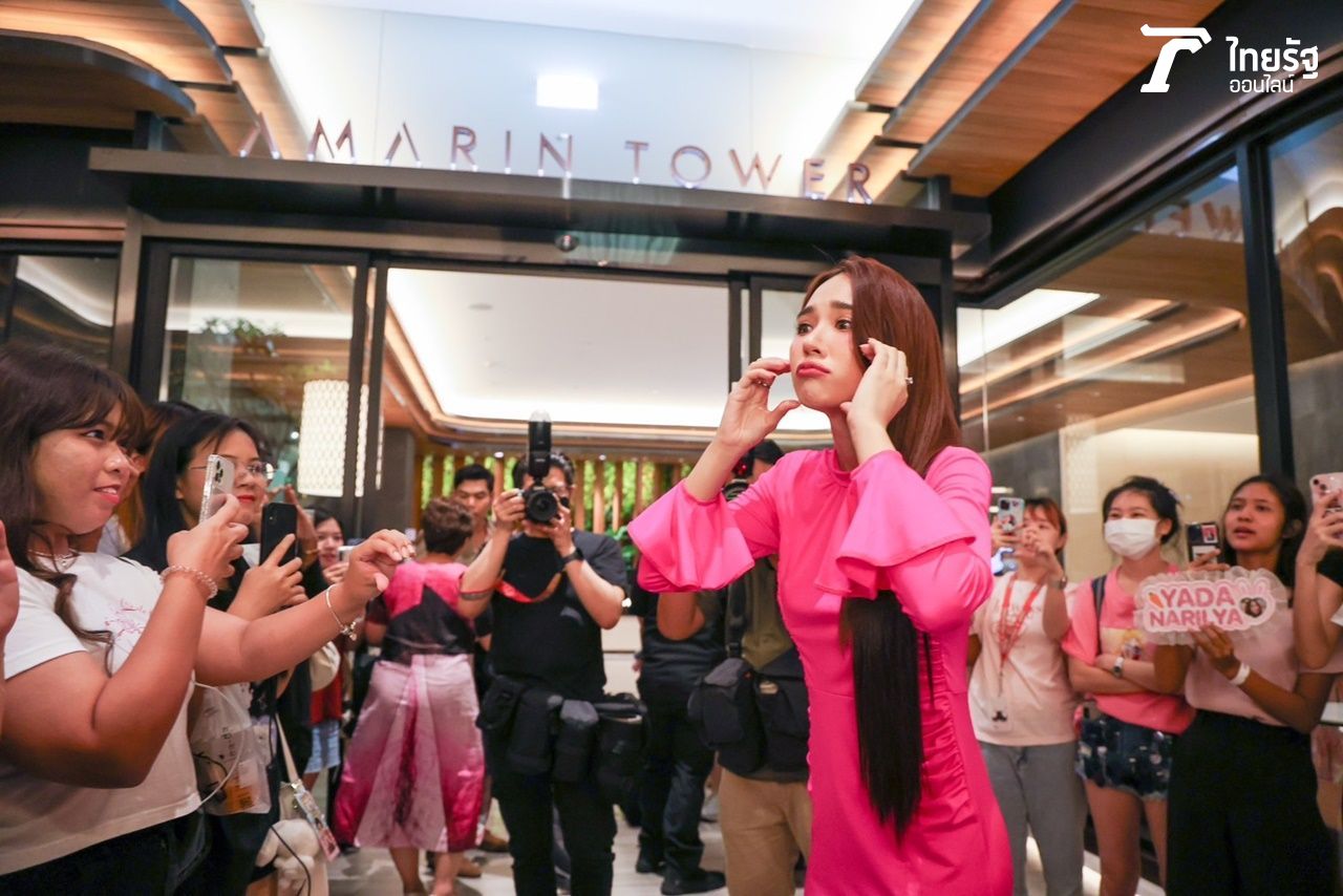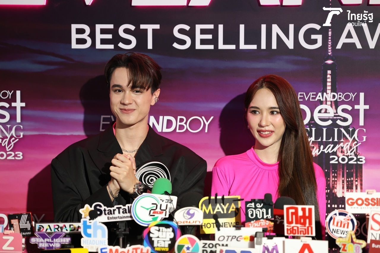 ส่วนที่บอกว่าเป็นคู่จิ้นห้างแตก จริงเหรอ คู่ห้างแตกเลยเหรอ (ยิ้ม) ถามว่ามีภาพนี้ในหัวไหมที่หลายคนมารอ ไม่มีเลยค่ะ ไม่มีในหัวว่ามันจะเป็นภาพที่ยิ่งใหญ่ขนาดนี้ ที่แฟนๆ ทุกคนมารอต้อนรับเรา เราได้มีงานอีเวนต์คู่กันด้วย ก็ดีใจมาก รู้สึกเป็นเกียรติมากๆ เลยค่ะ (ยกมือไหว้)”.